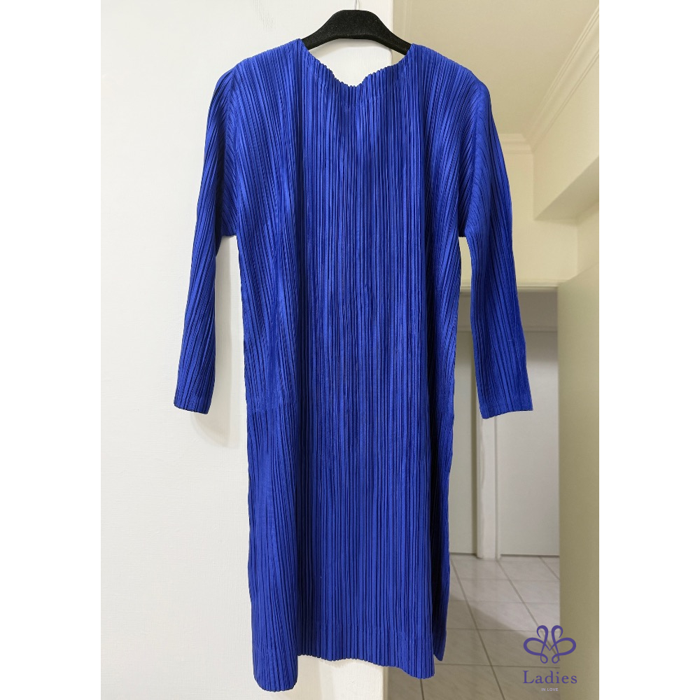 售三宅PP寶藍色皺褶長版上衣/短洋裝,季節限定款,榮耀系列光澤度都很好,好看不可缺的單品,
