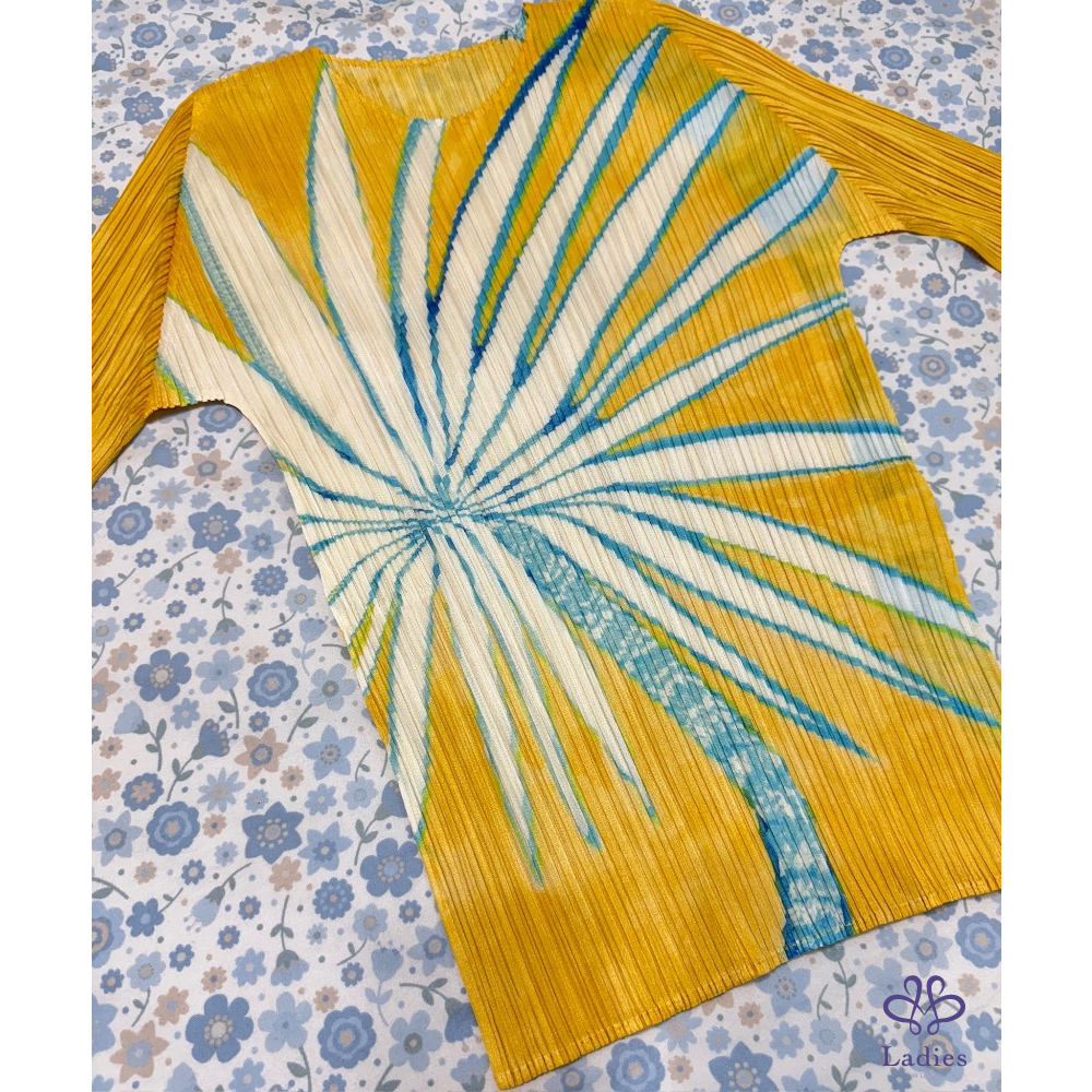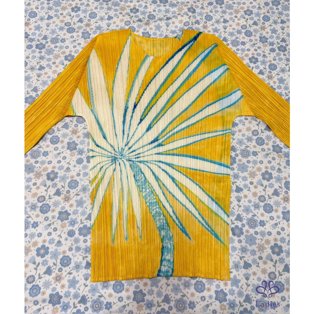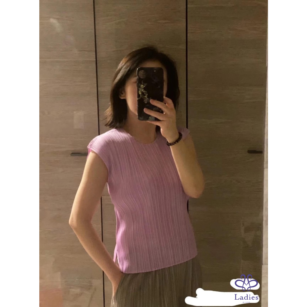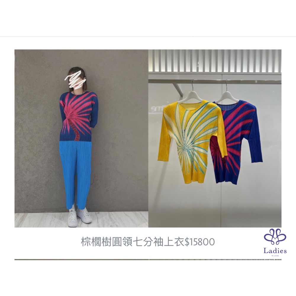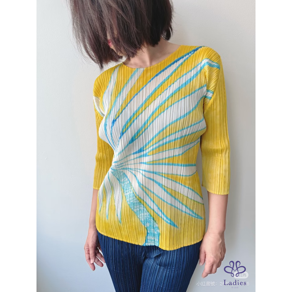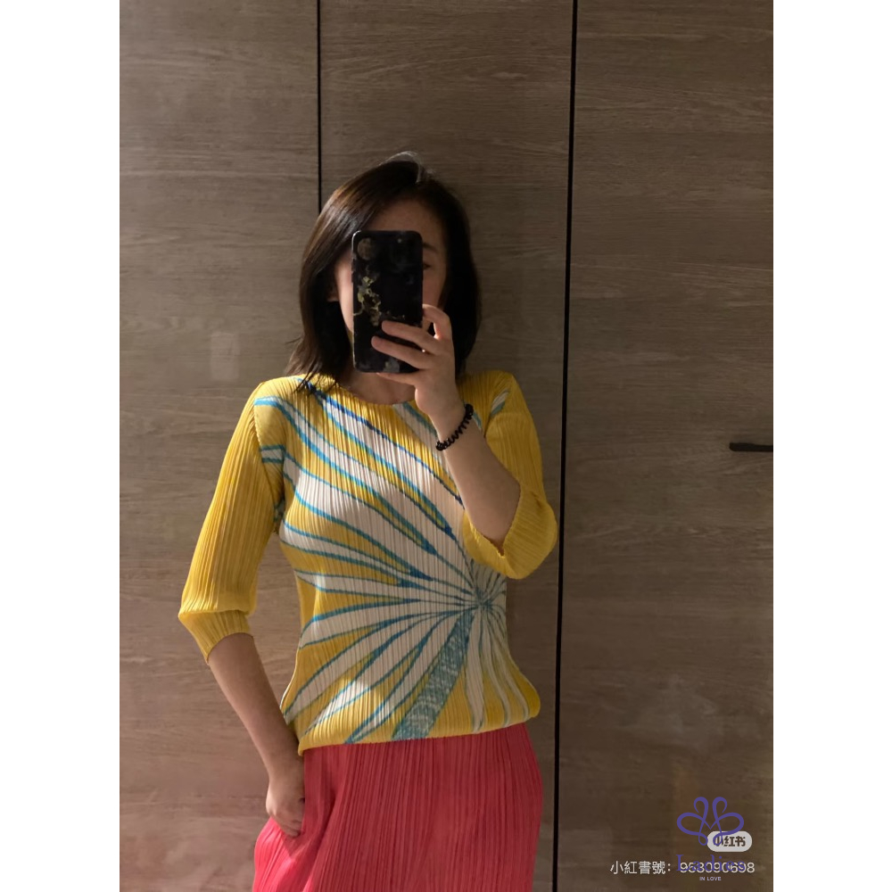 售三宅PP 棕櫚樹圓領褶皺七分袖上衣,23年8月款,絕版美品,搭配直筒褲、寬褲都很美,時尚百搭;