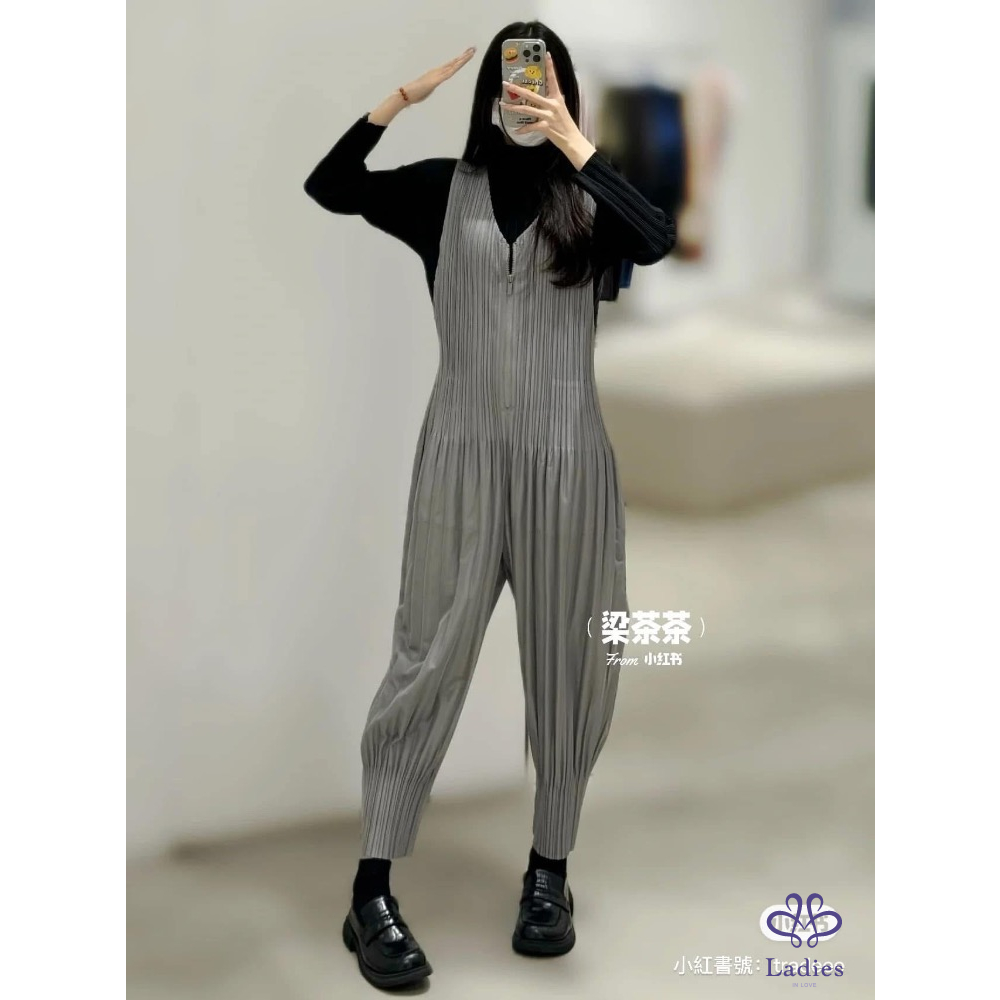 售三宅PP冷灰色簾褶褶皺連身褲,經典款,𥚃面隨便搭一件基本款上衣或T恤就很美,三宅粉必收;