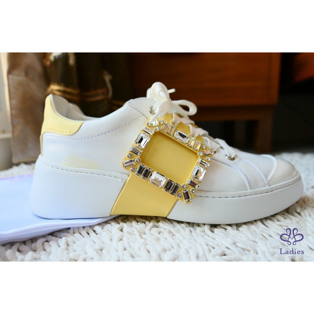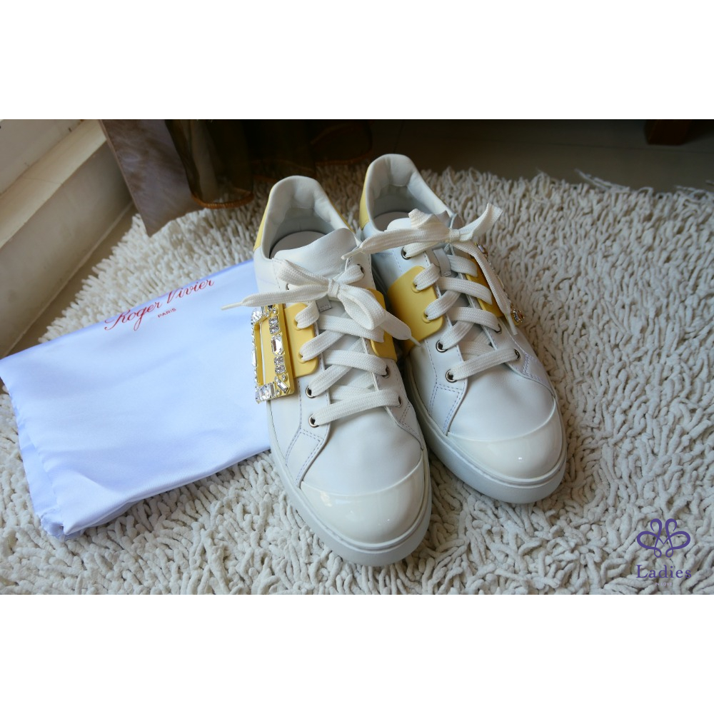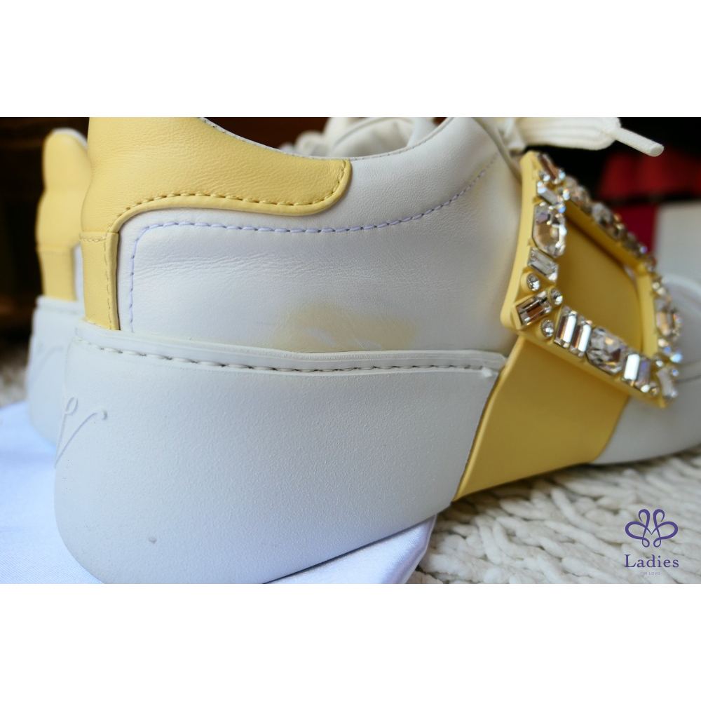 RV Viv' Skate Strass鵝黃色鑽扣小白鞋 牛皮運動鞋 SIZE:39