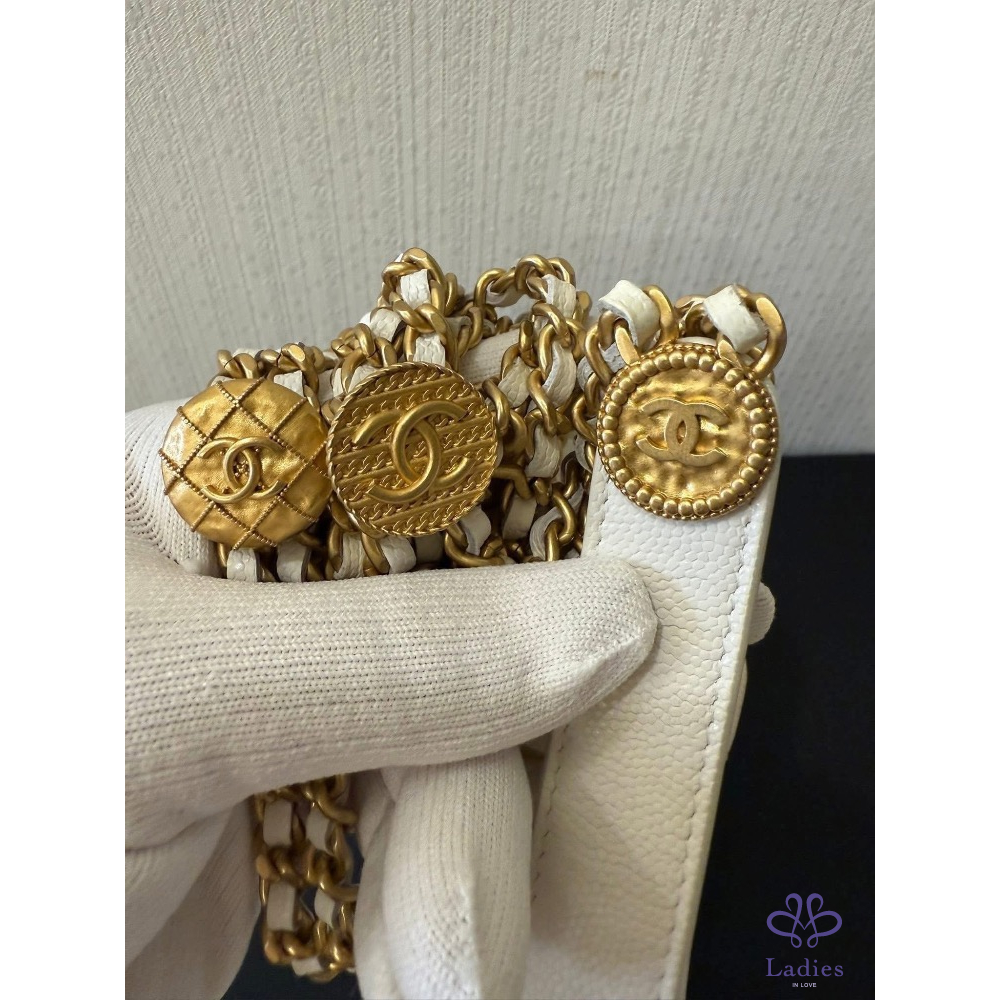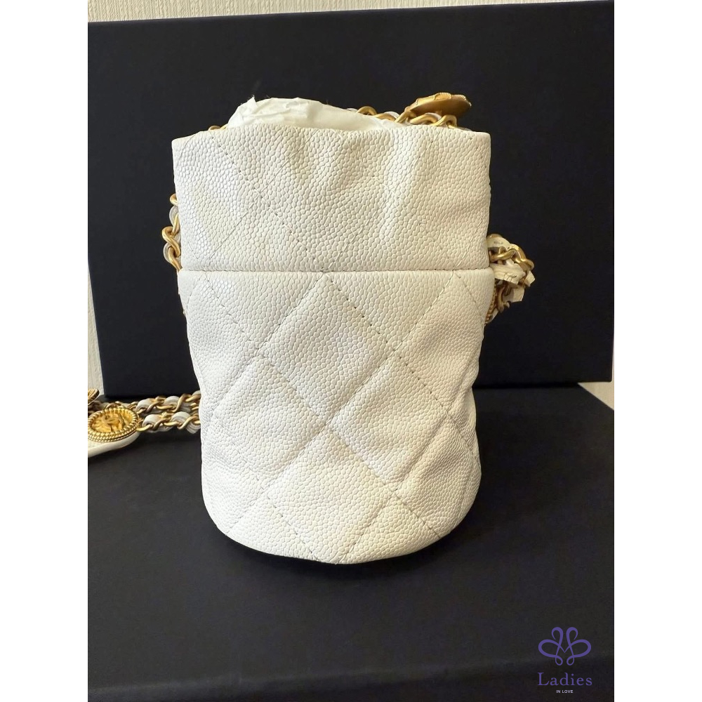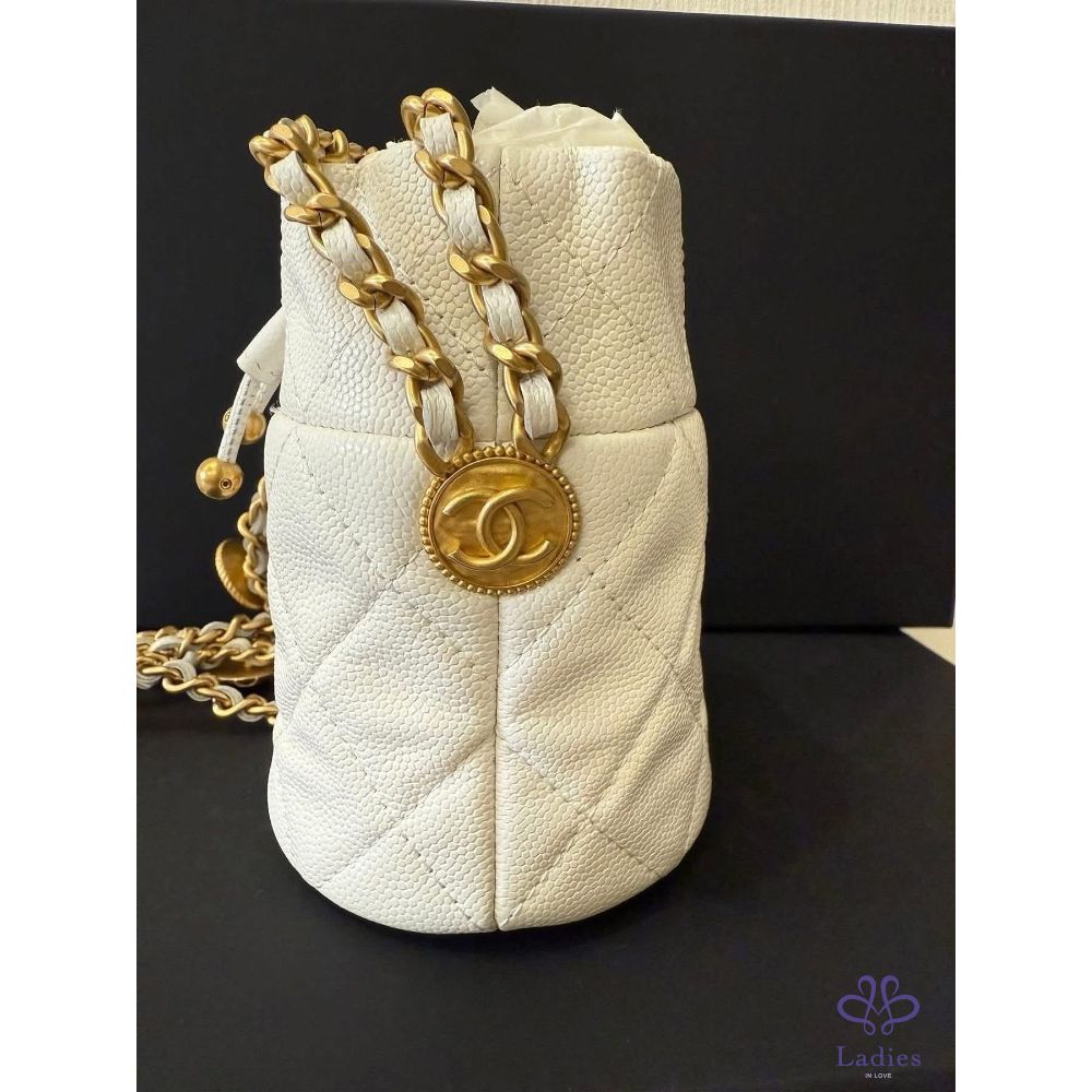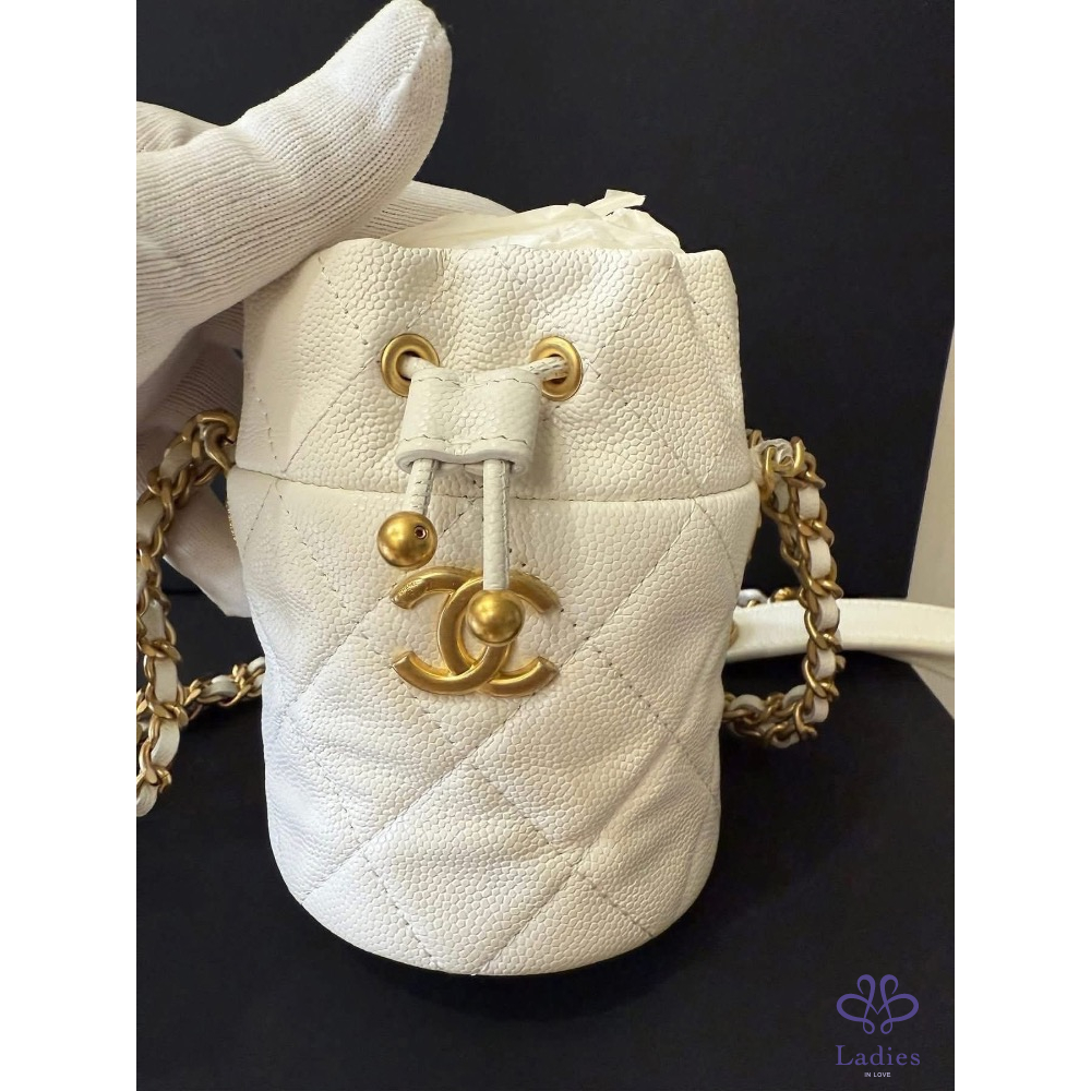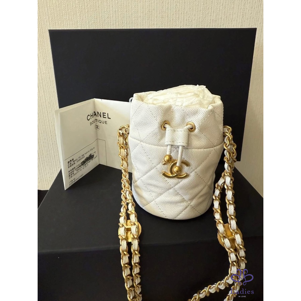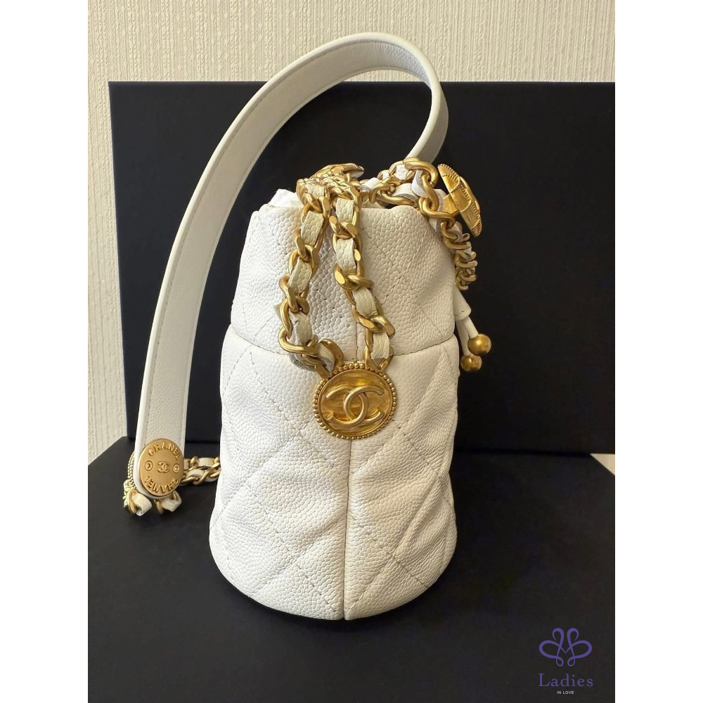 金球拉繩菱格紋荔枝牛皮金幣鏈帶 mini水桶包 小廢包