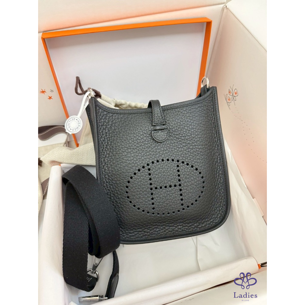 產品信息 感謝管理員審核🙏❤️ 寵愛編號A037253 【商品名稱】全新 Hermes Mini Evelyne 黑銀K刻 【新舊陳述】全新+購證正本1/21剛拿到僅拍照 【售價】⭕️NT$86,000元⭕️ 【來源】台灣 【交易方式】面交\宅配皆可 【商品介紹補充】 年輕時髦銀!黑色好搭,本尊的皮超軟~質感100分 ✖️售出不退 購物前請謹慎評估唷!勿棄標浪費彼此寶貴時間😊