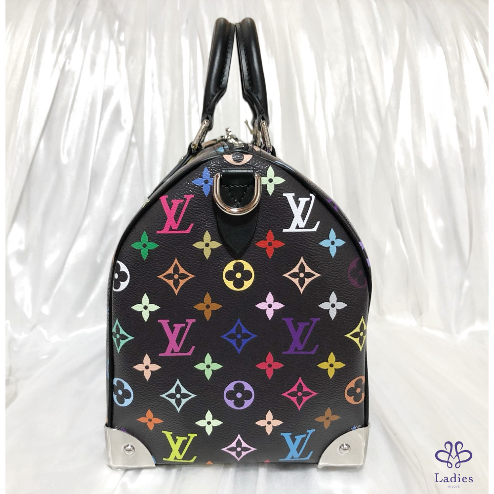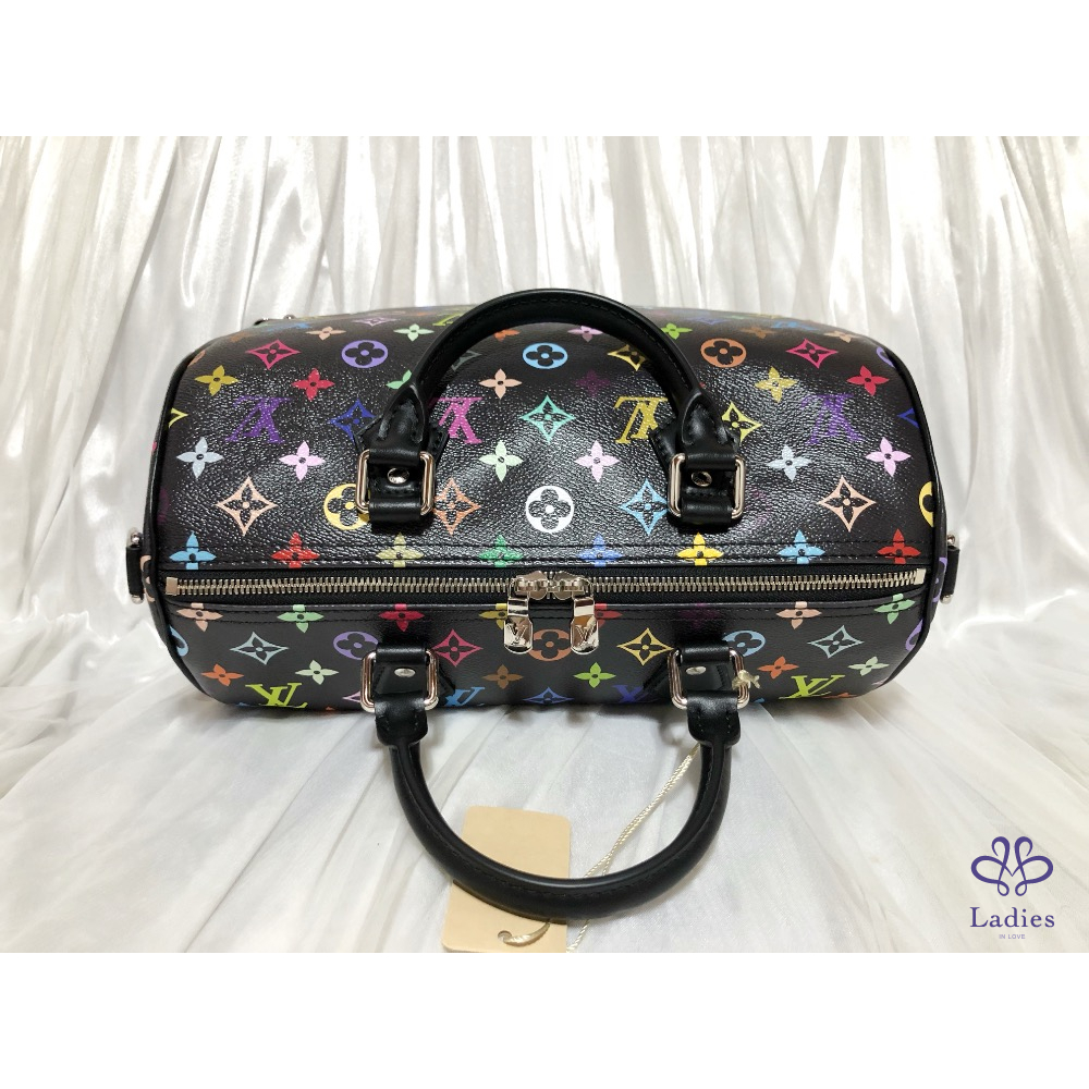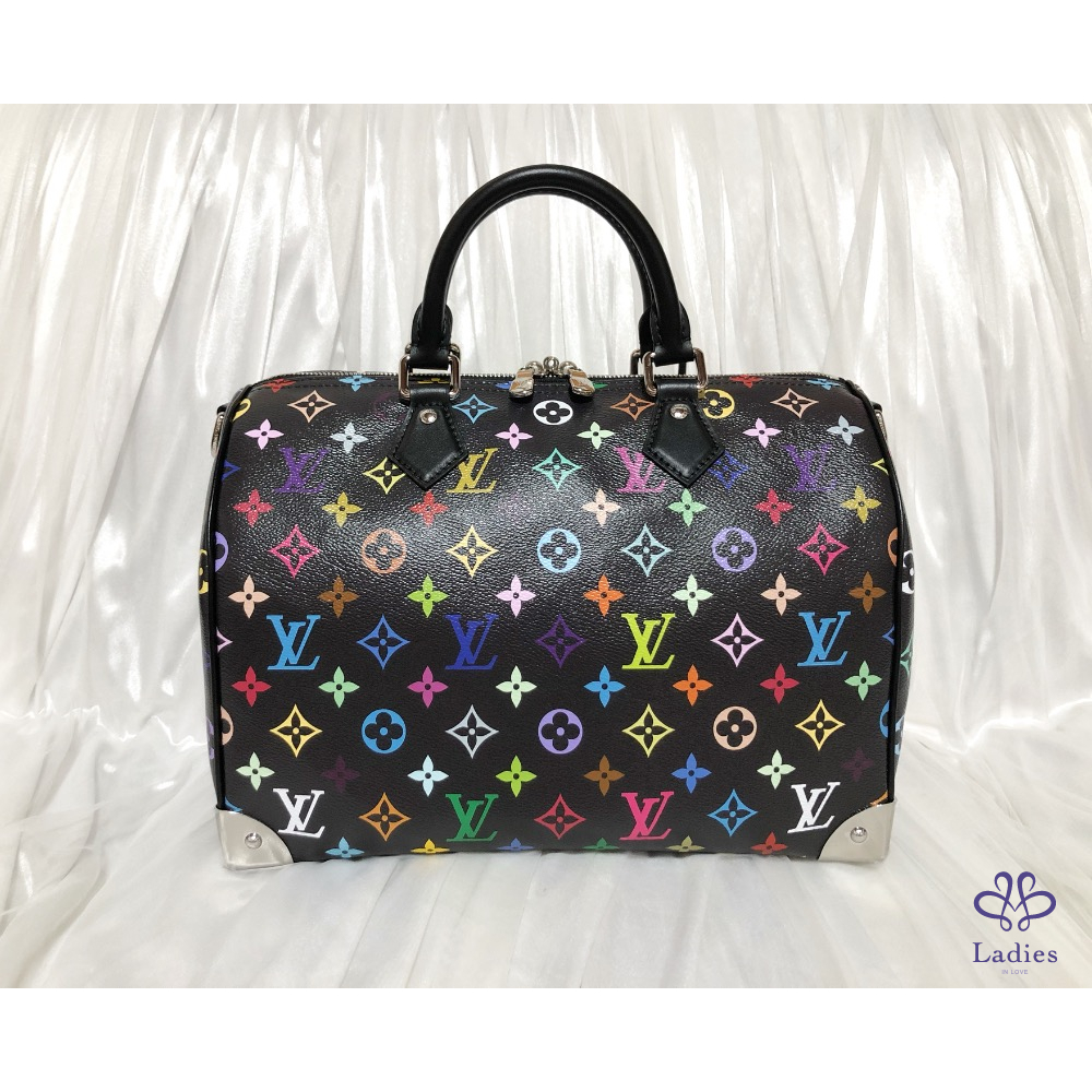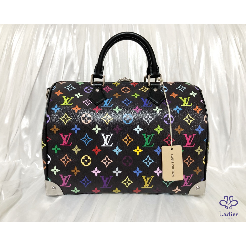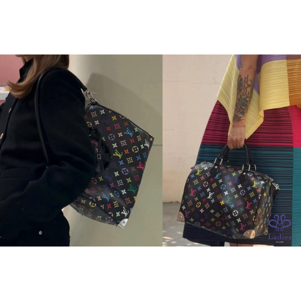 這款復刻版Louis Vuitton x Murakami系列的Speedy Soft 30以柔軟的塗層帆布製作,綴滿彩虹繽紛色調的Monogram印花圖案,打造矚目風格。兩個Toron頂端手柄及可調節長度可拆式肩帶均以同色調牛皮打造,而金屬護角則向路易威登傳統旅行硬箱致敬。玩味十足的蝴蝶結鑰匙套配有掛鎖設計,更添標誌性格調。芯片款,金屬貼膜有另外自己貼過可接受在購買‼️