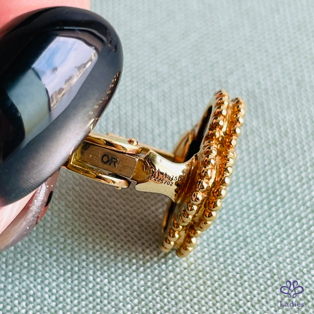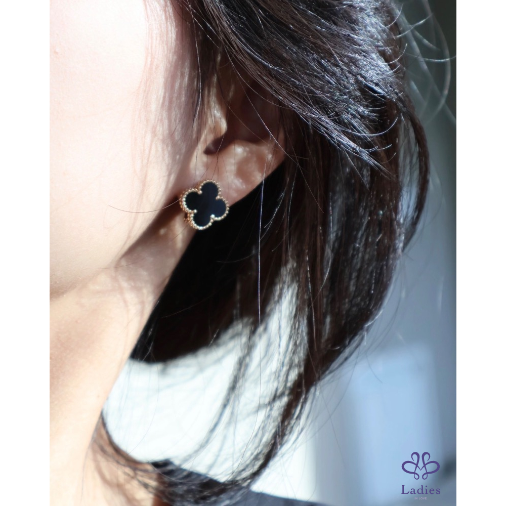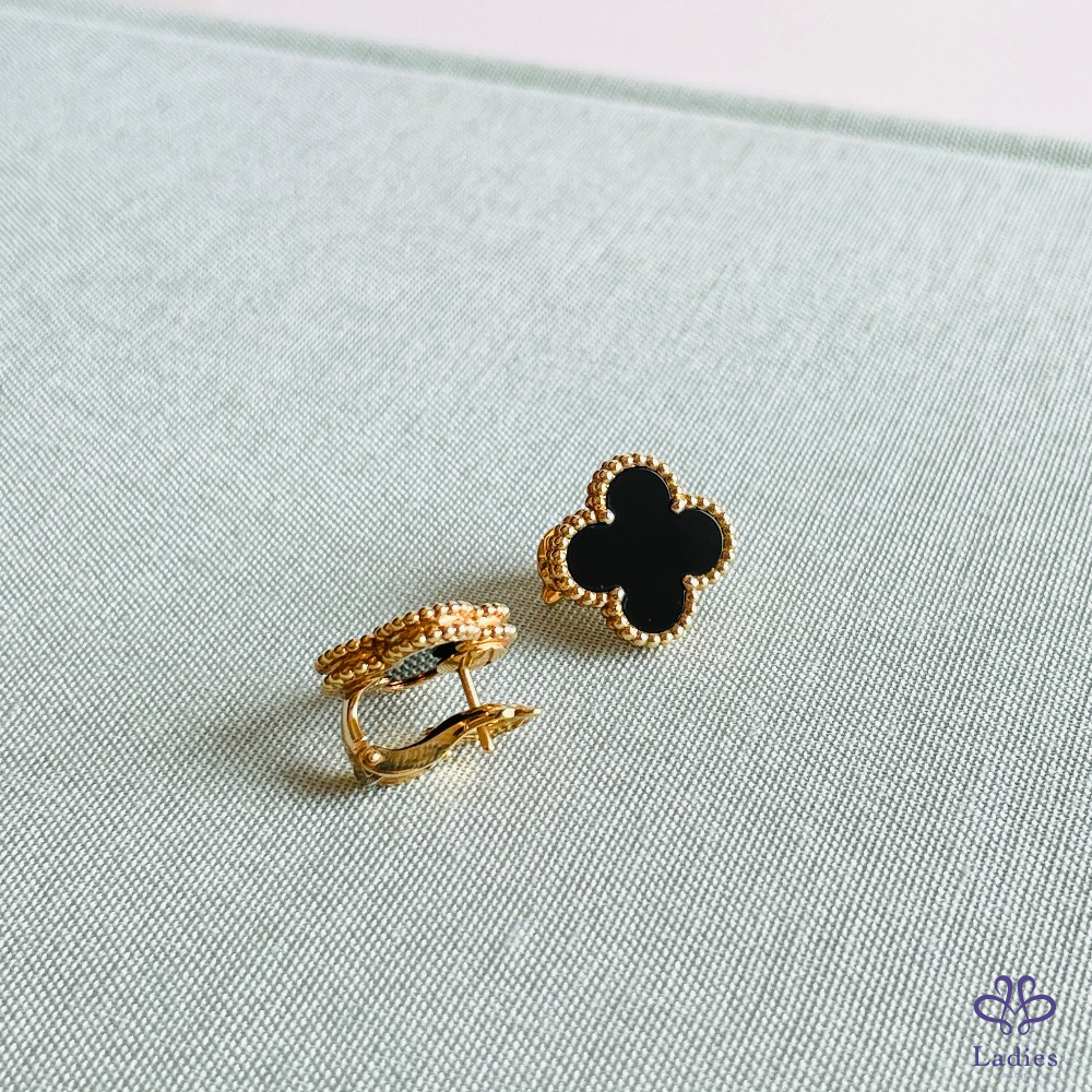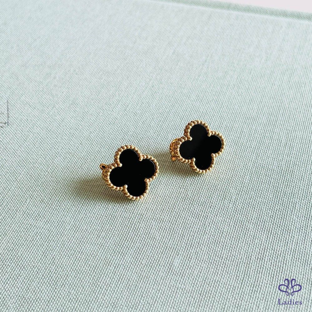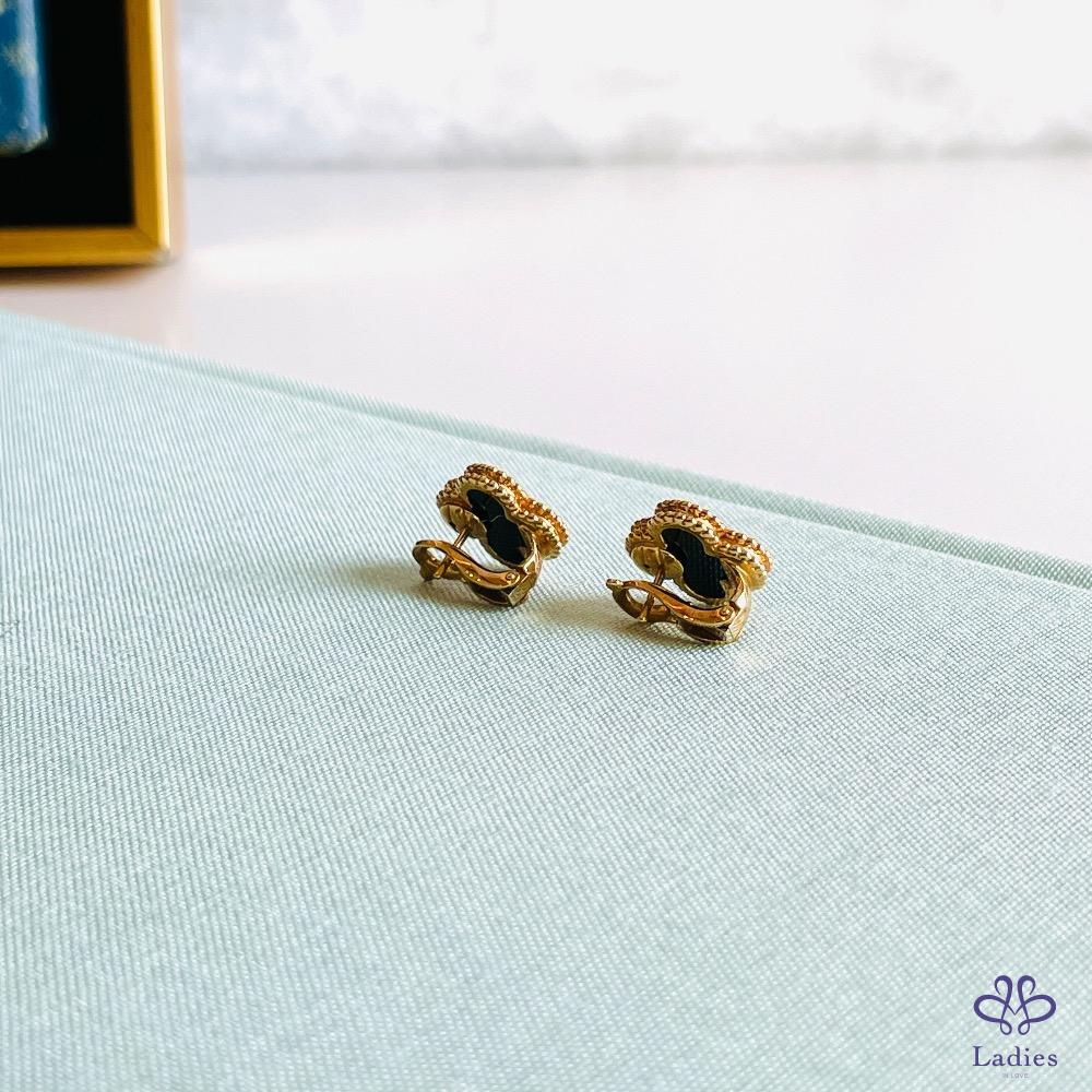 VCA 黑瑪瑙幸運草玫瑰金耳環