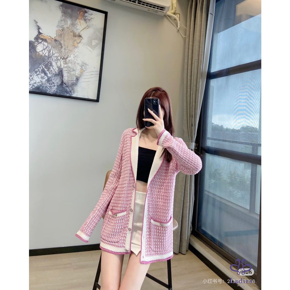 首頁 精品服飾 Chanel 粉紅針織罩衫外套🫟