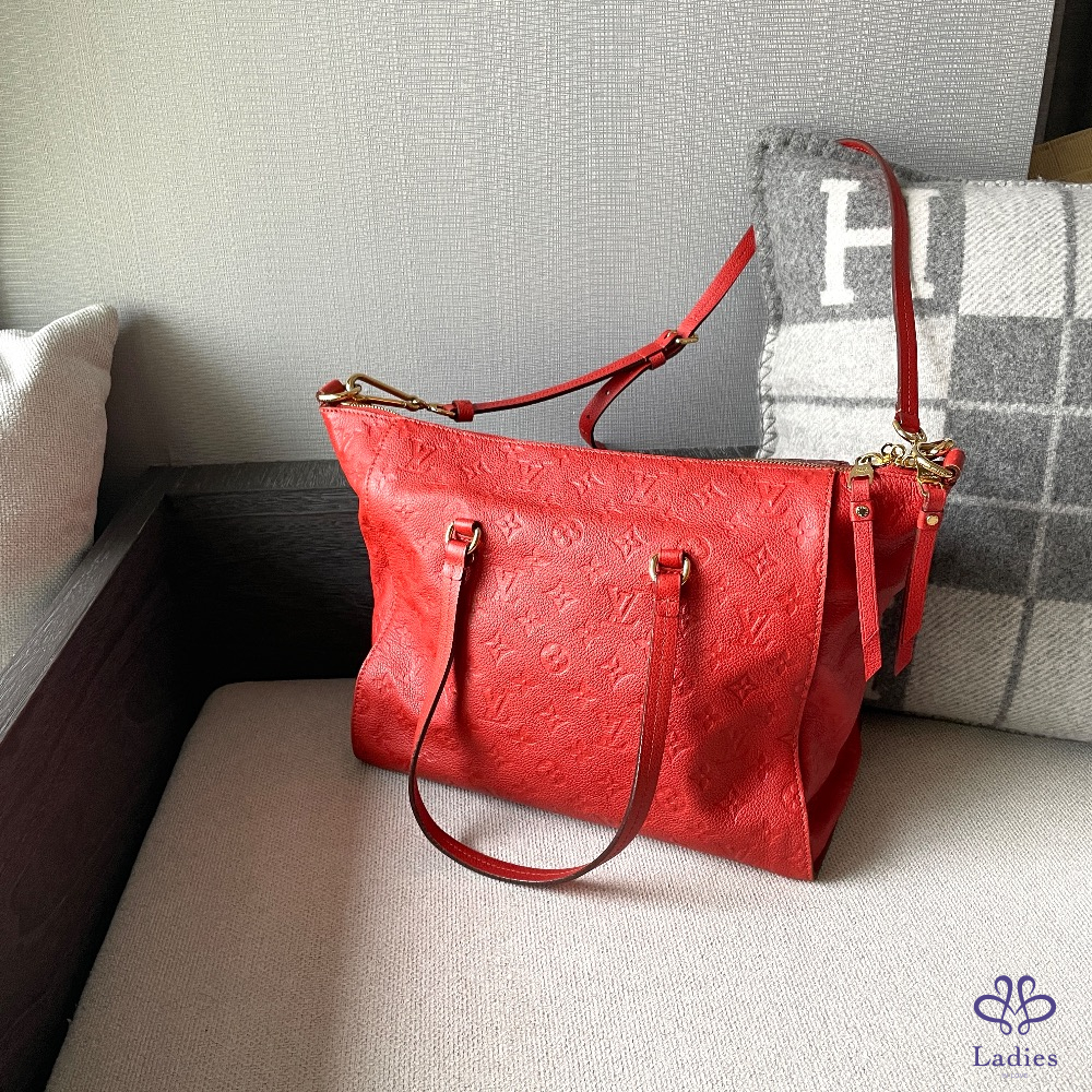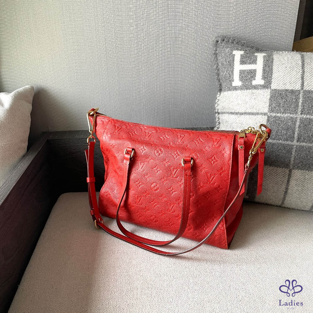 💖LV lumineuse 紅色老花壓紋兩用包