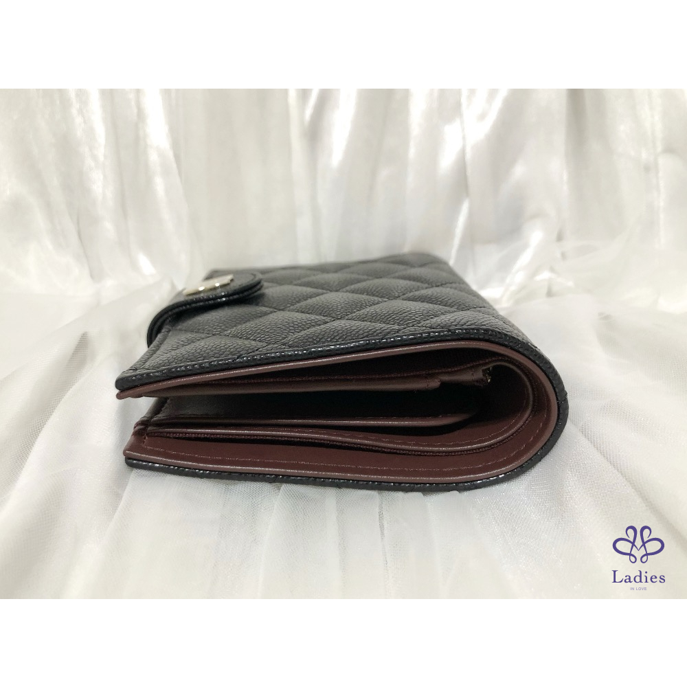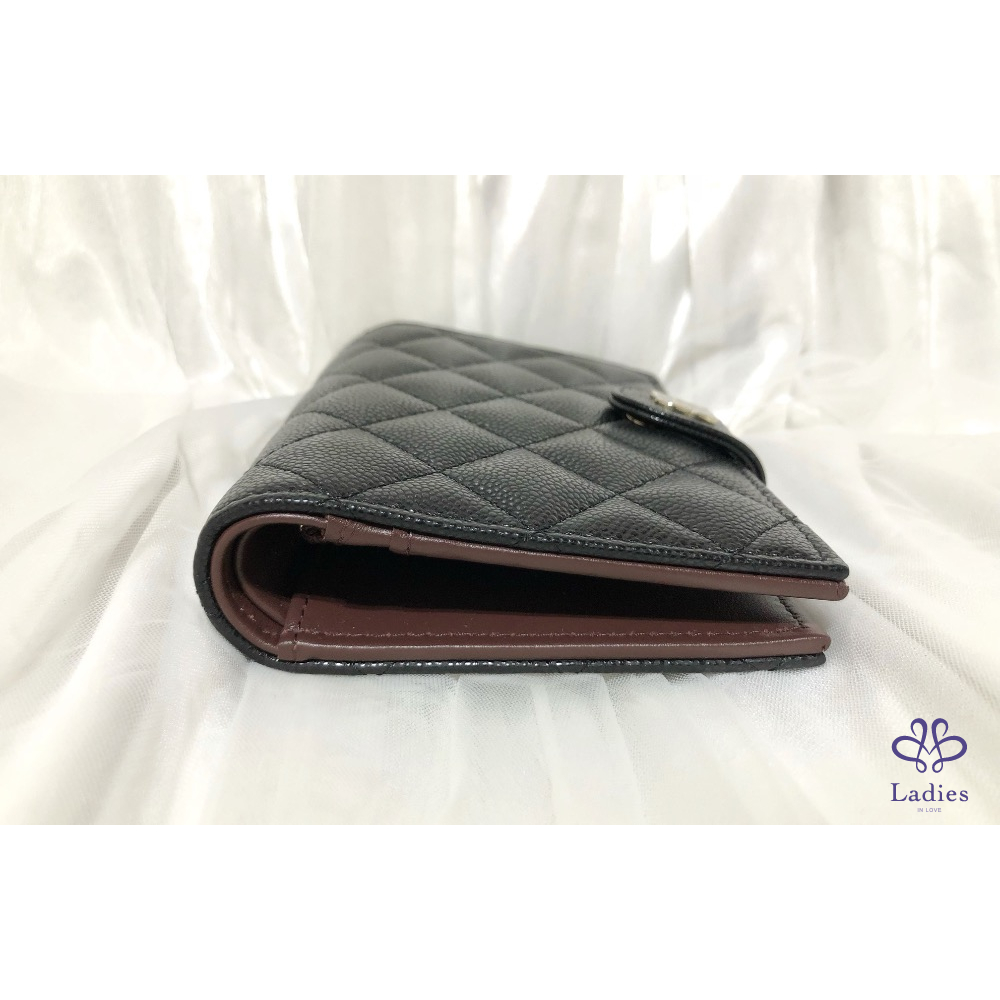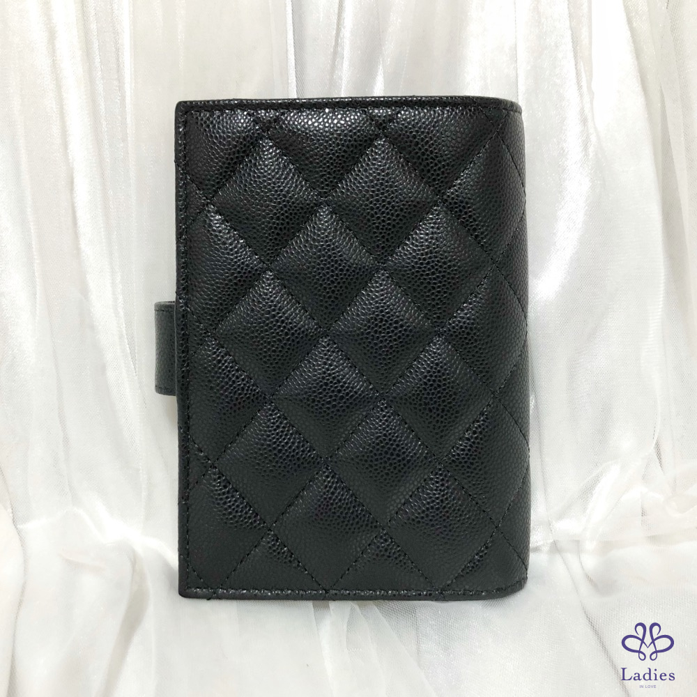 CHANEL 黑色 荔枝牛皮 淡金扣 多功能 護照夾 護照套 全新✨