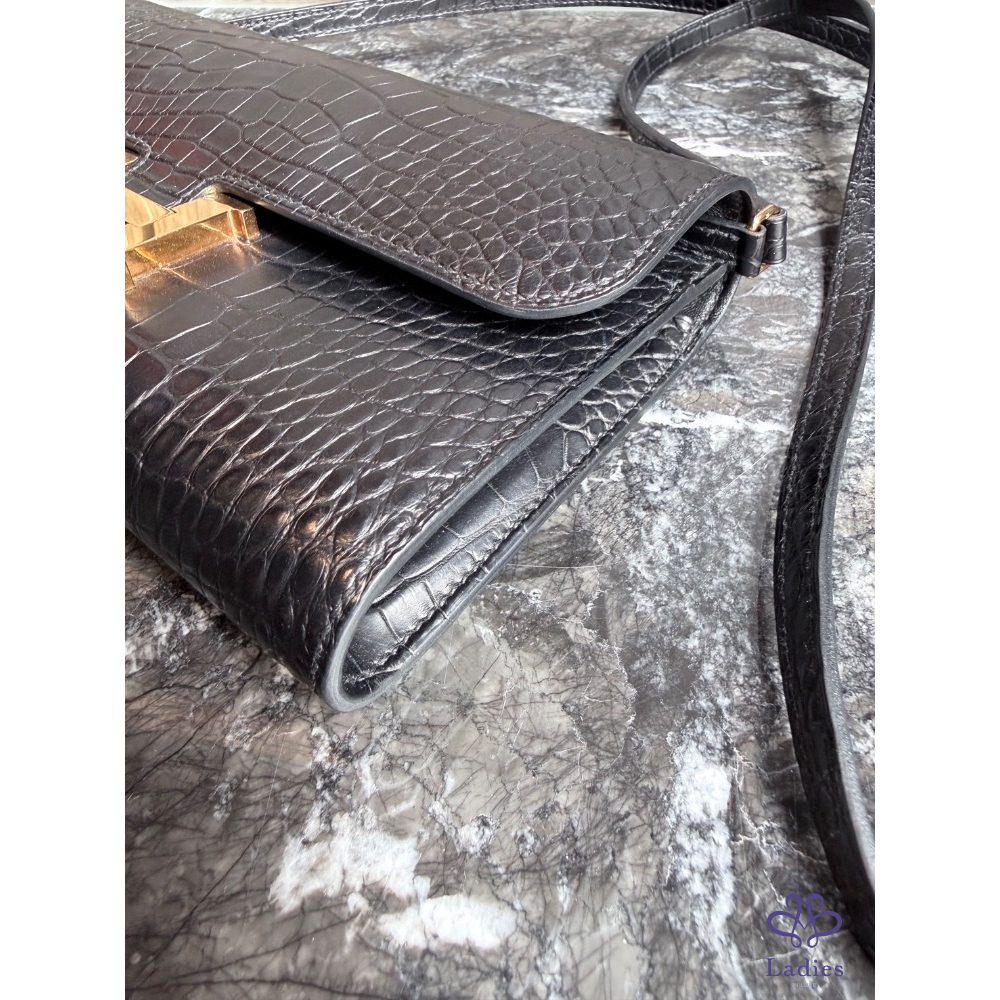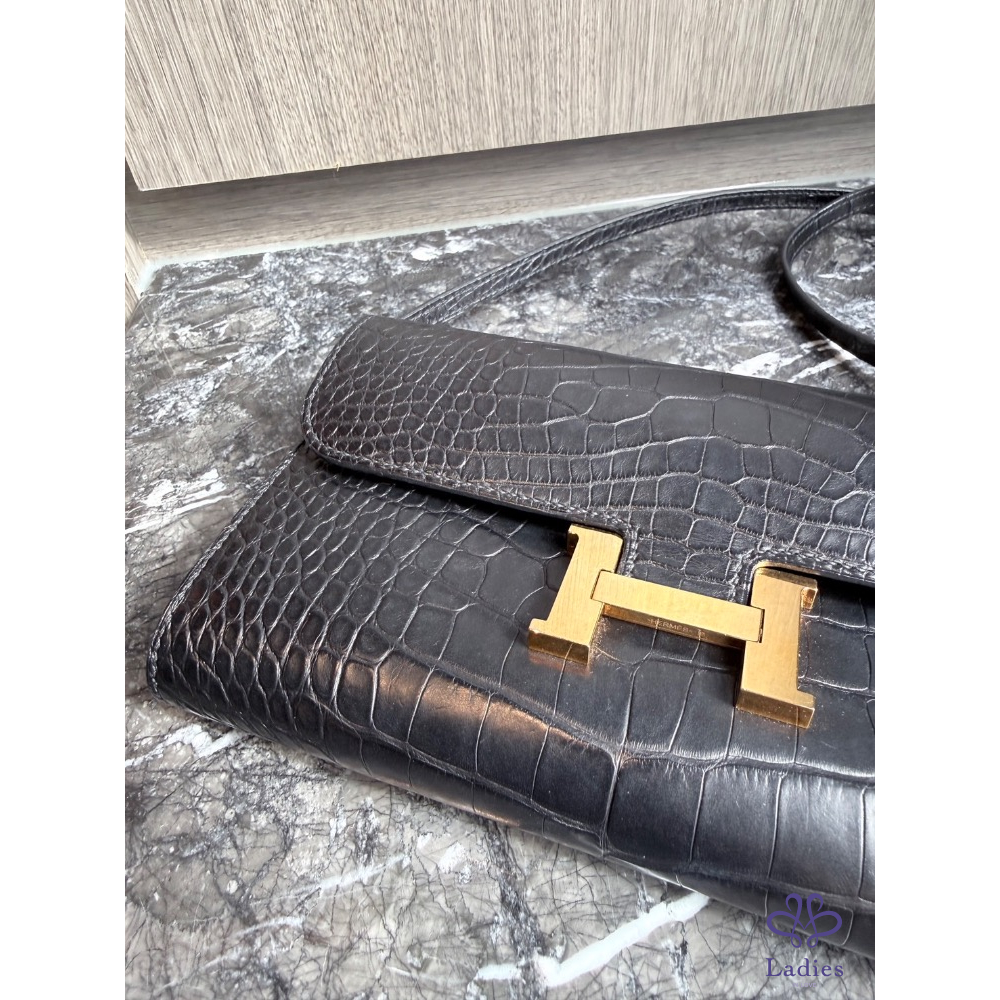 Hermes constance to go黑金鱷魚皮