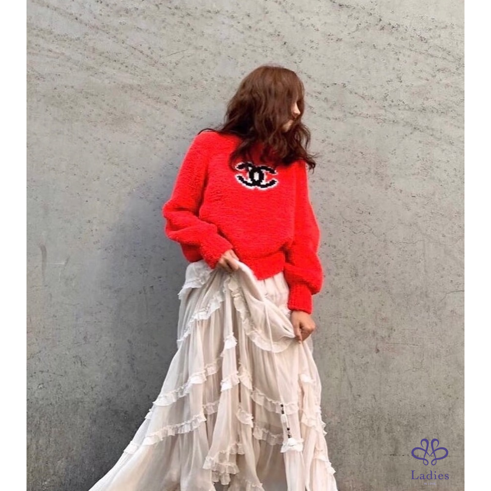 首頁 精品服飾 Chanel 雪地秀場泰迪毛桃紅色雙C大logo毛衣