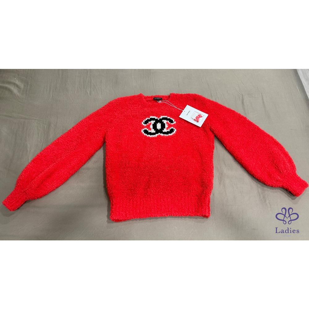 Chanel 雪地秀場泰迪毛桃紅色雙C大logo毛衣