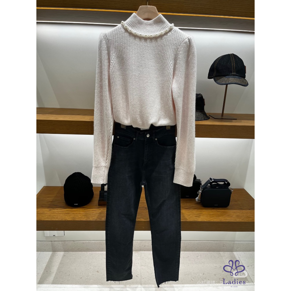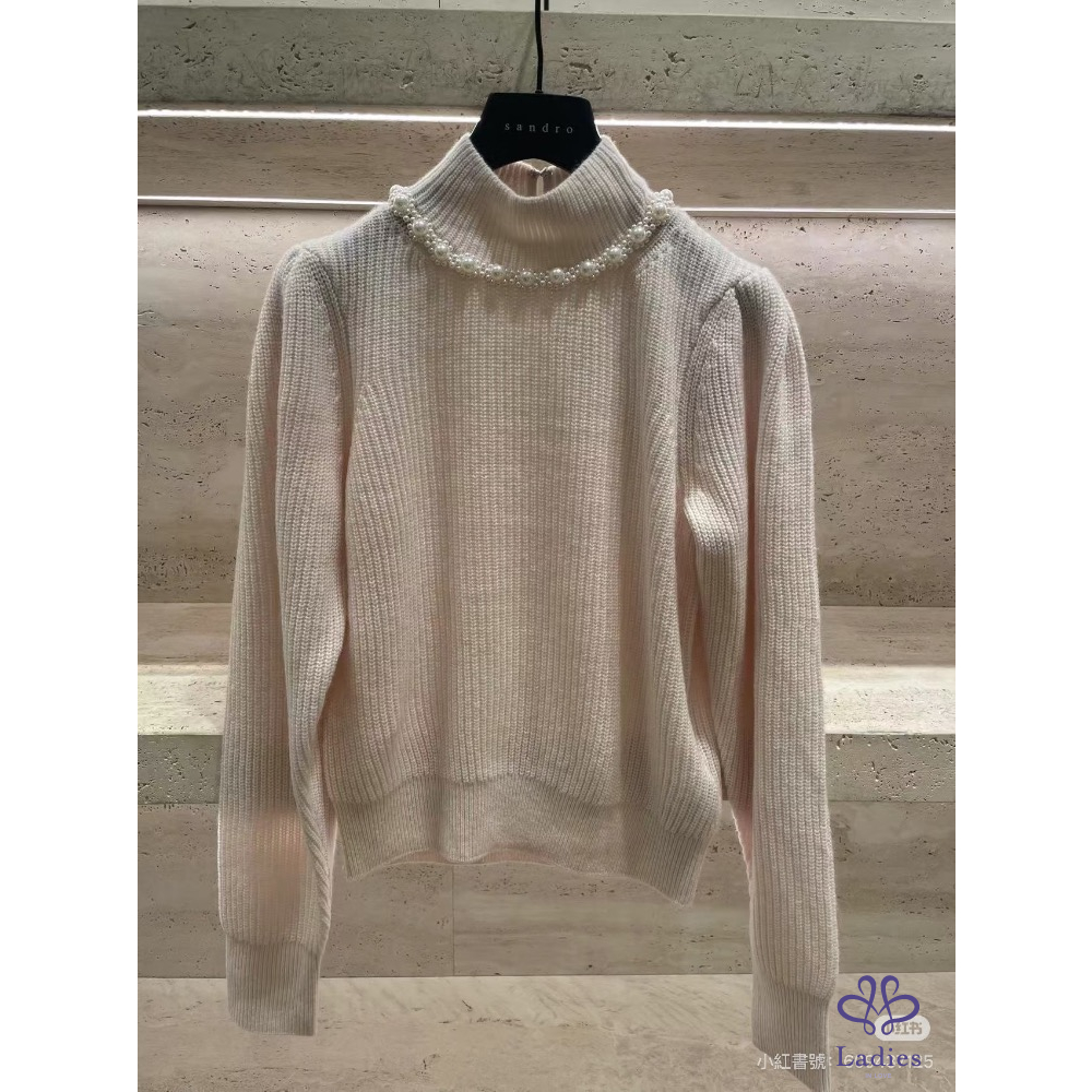 法國輕奢S.A.N.D.R.O珍珠領奶油白毛衣