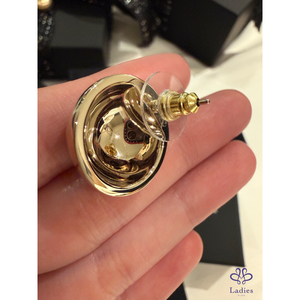 Chanel 耳環 耳針 半球金色黑字