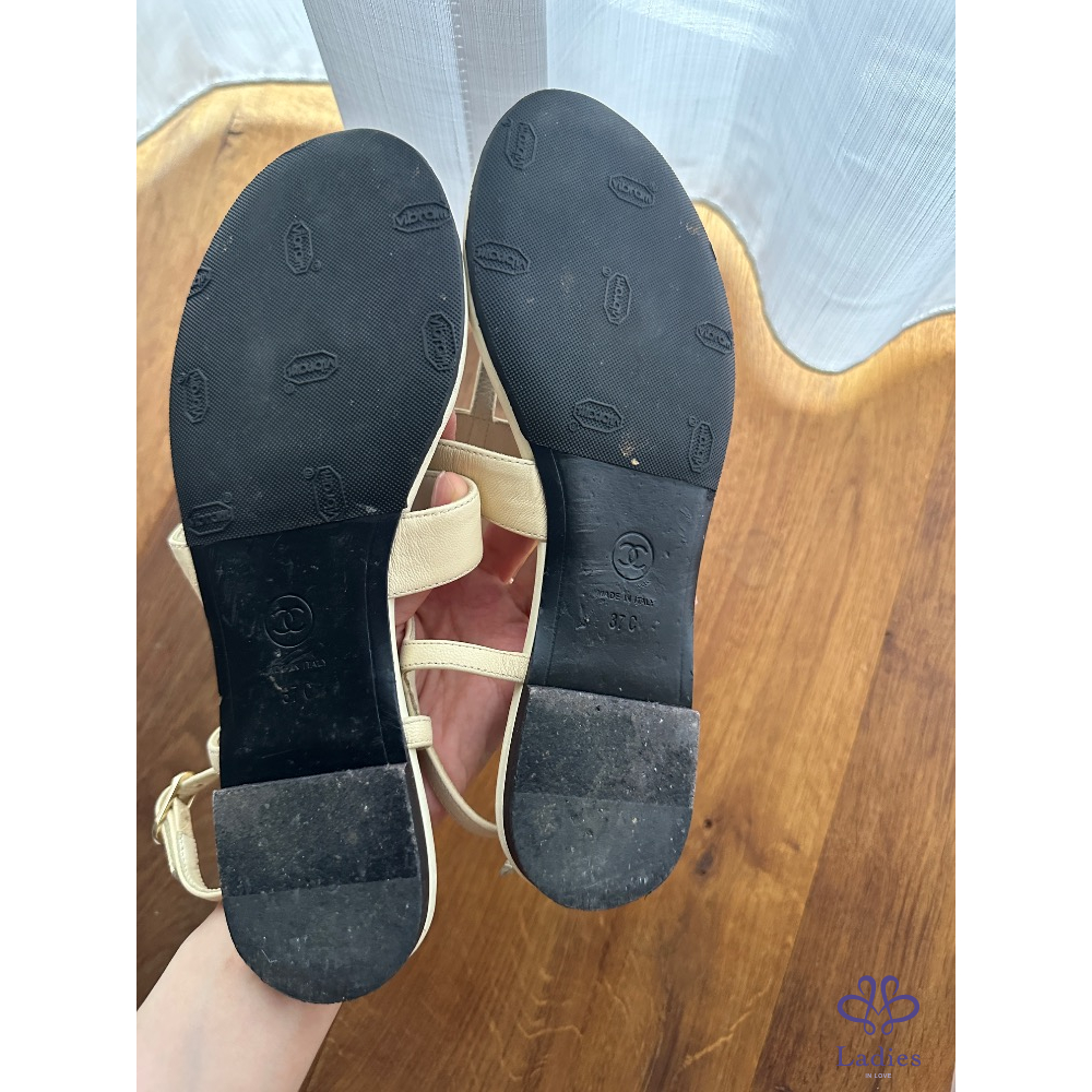 【品名】Chanel 涼鞋/米杏