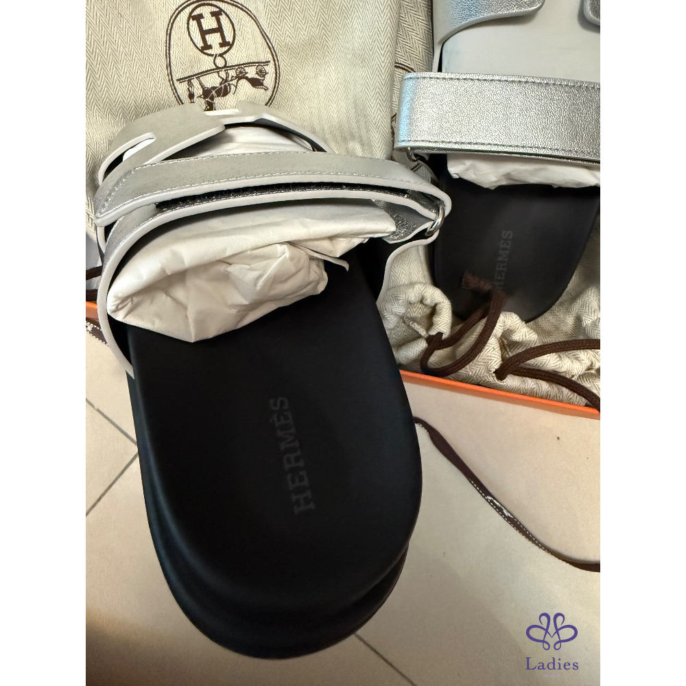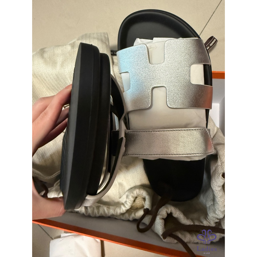 Hermes 愛馬仕 二舅鞋新色 銀色 38號 全新