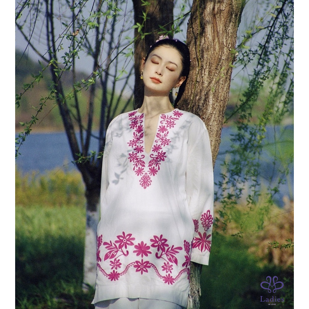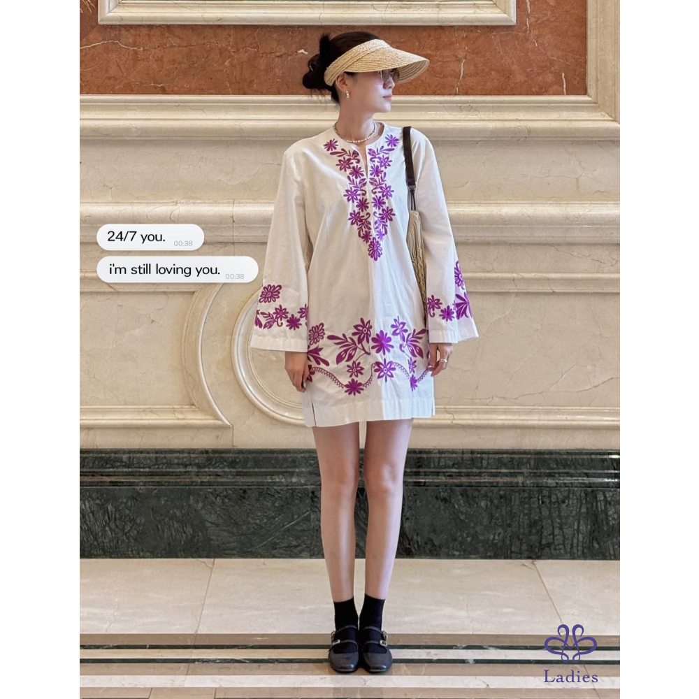 首頁 精品服飾 全新Maje法國輕奢,超美度假風紫色刺繡洋裝
