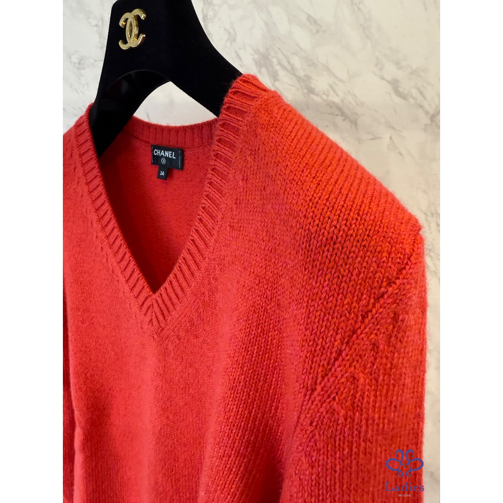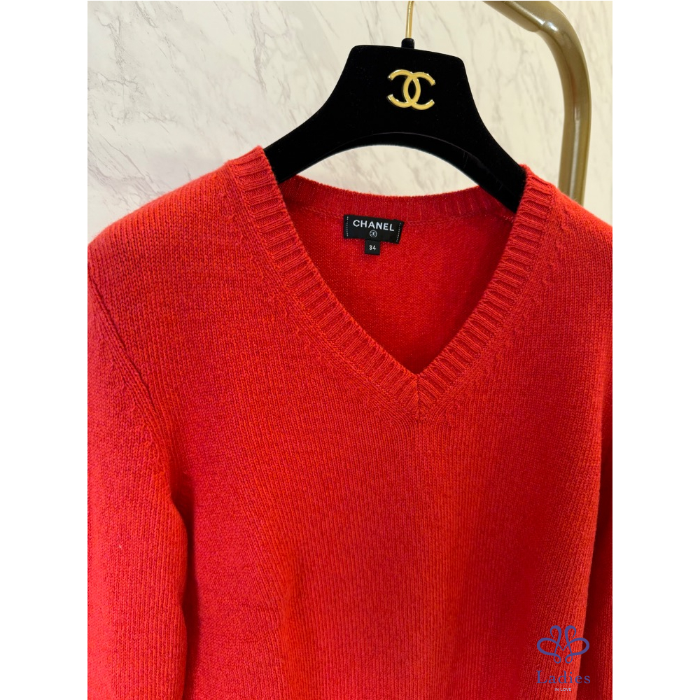 ❤️ Chanel 紅色V領羊絨羊毛衫