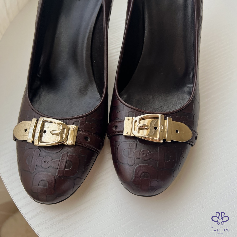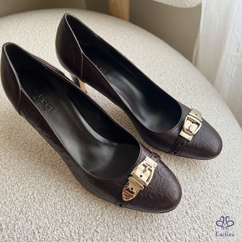 Gucci 雙G壓紋高跟鞋 酒紅375