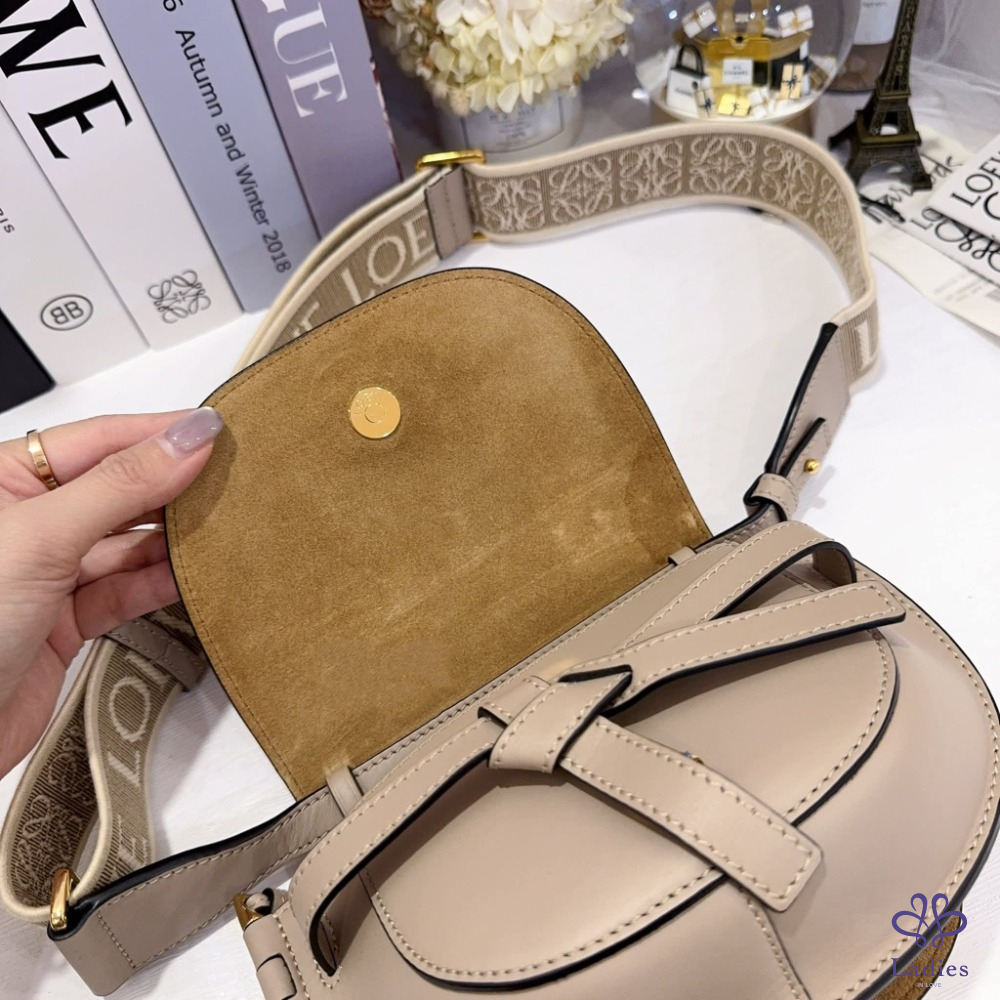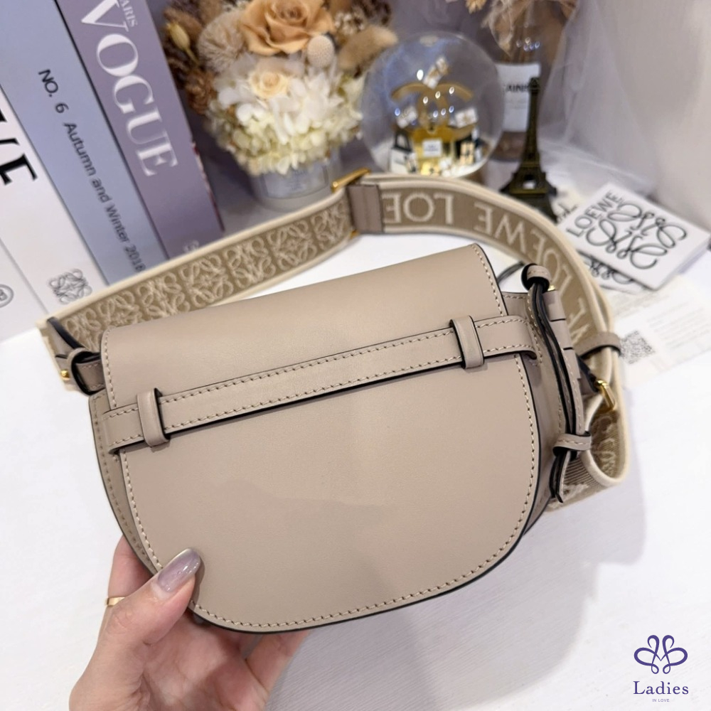 產品信息 A004070 ❤️這款包包是 Mini Gate Dual 迷你小牛皮雙層馬鞍包,它是最受歡迎的經典系列之一,以其獨特的側面金屬插鞘鎖扣和前方的皮革蝴蝶結裝飾而聞名。 💐款式與顏色:此款為燕麥色,配有飾有 LOEWE 標誌圖案的緹花織寬背帶。 🌼材質:採用柔軟的小牛皮精製而成,展現品牌的高水準皮革工藝。 🌷全新 🪻尺寸:21×12.5×9.5cm 🎁附件:防塵袋,小冊,吊牌,購證