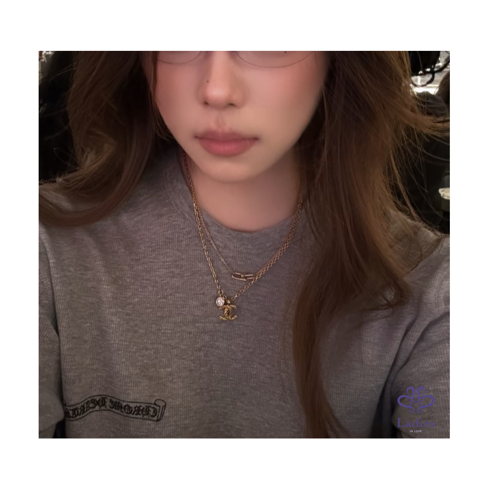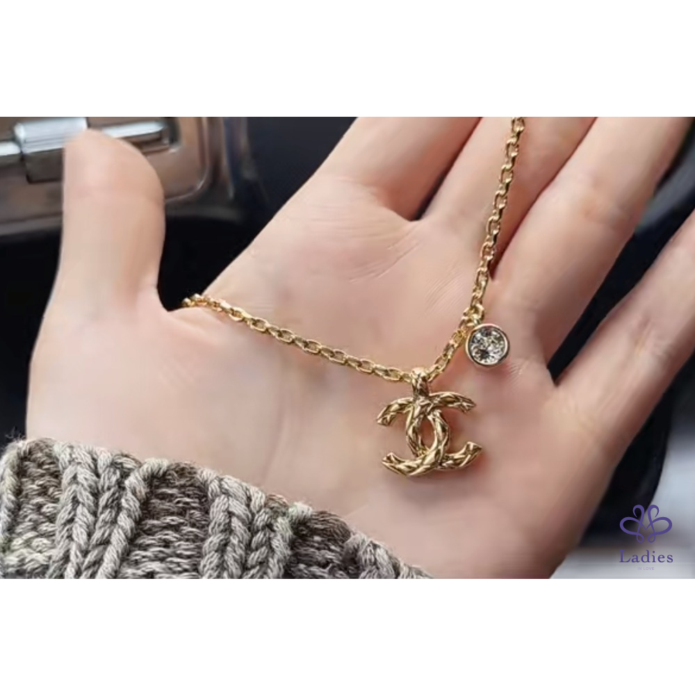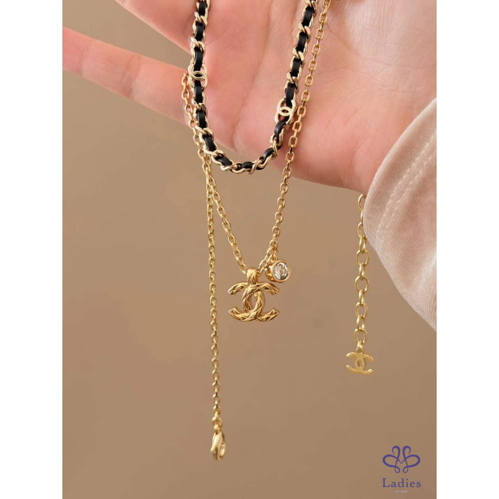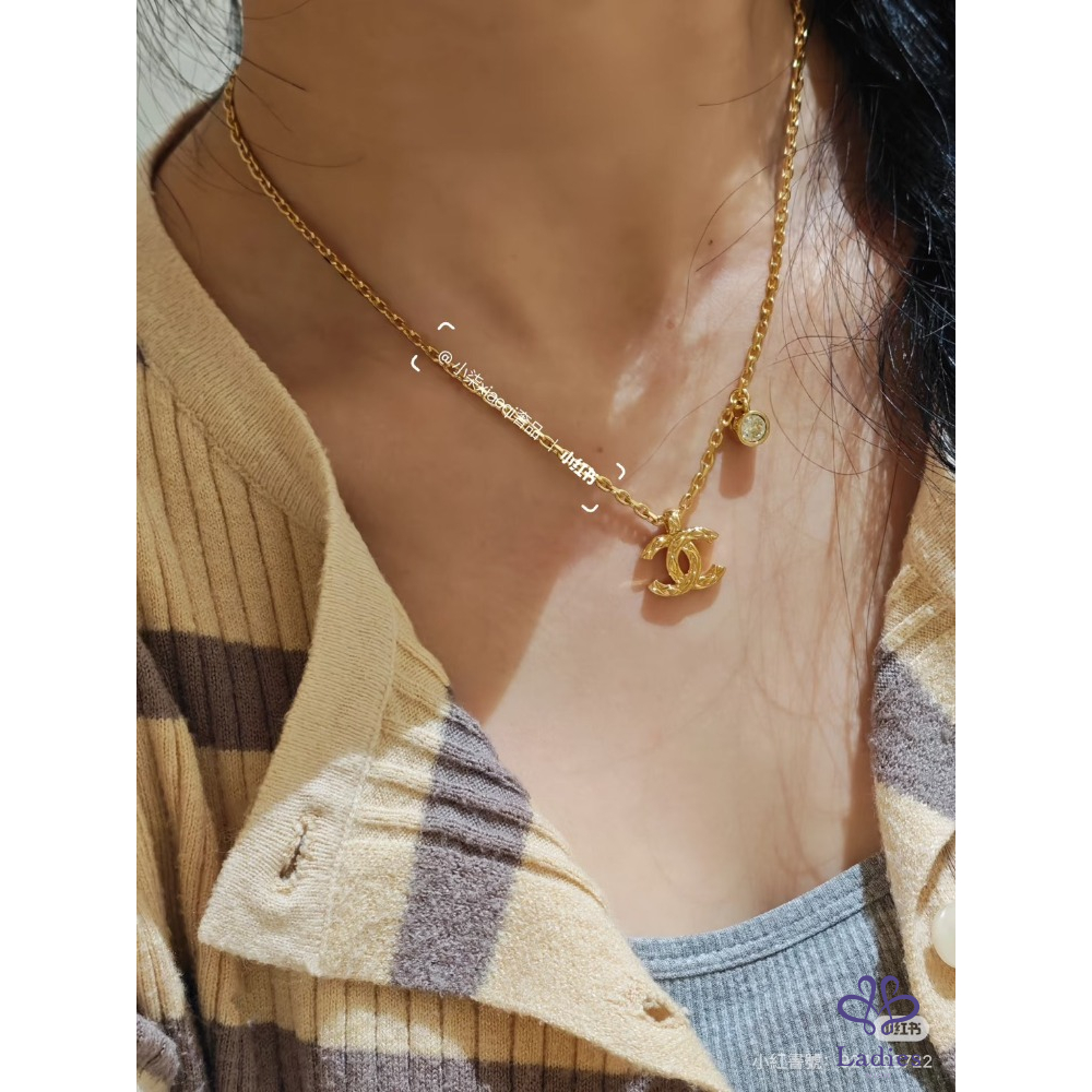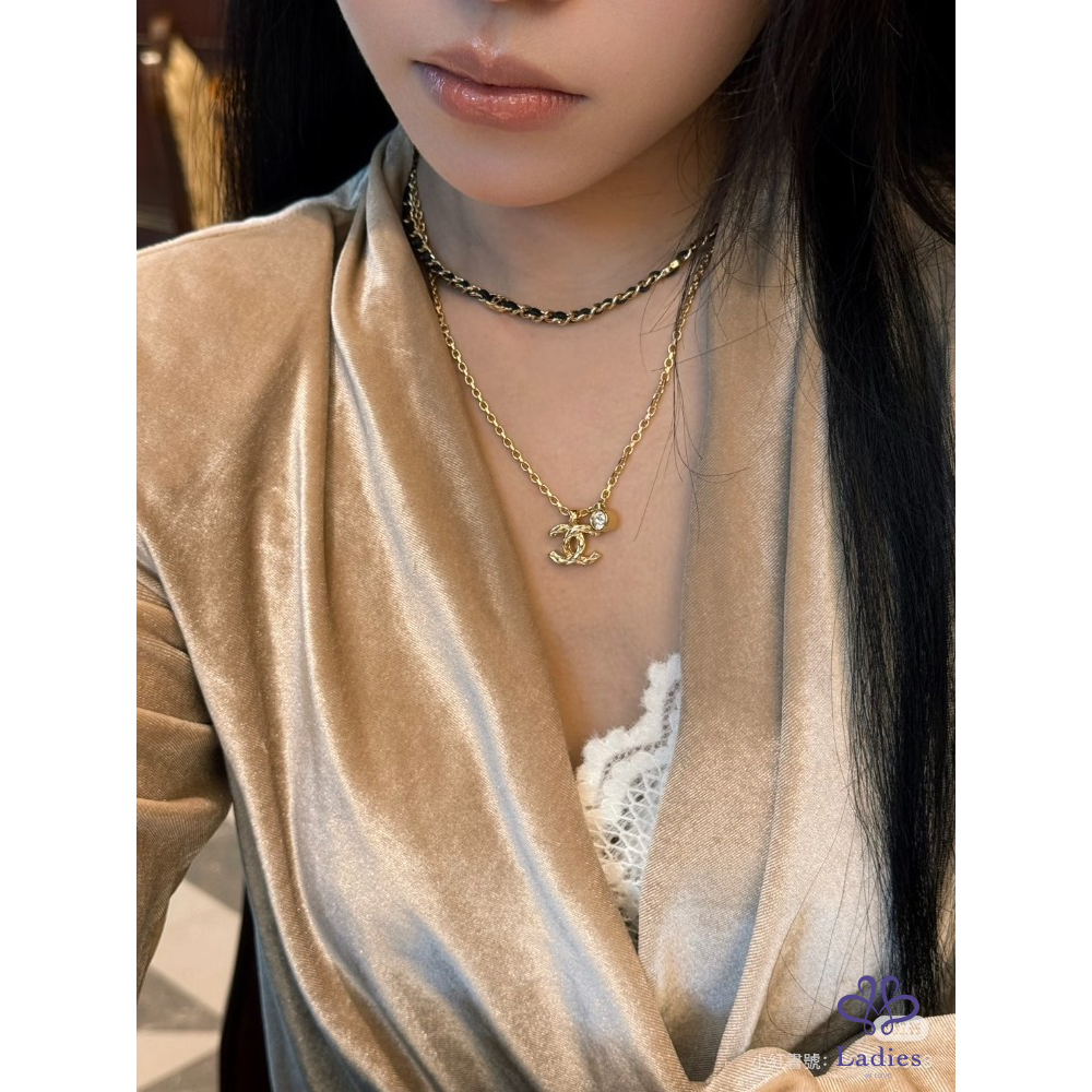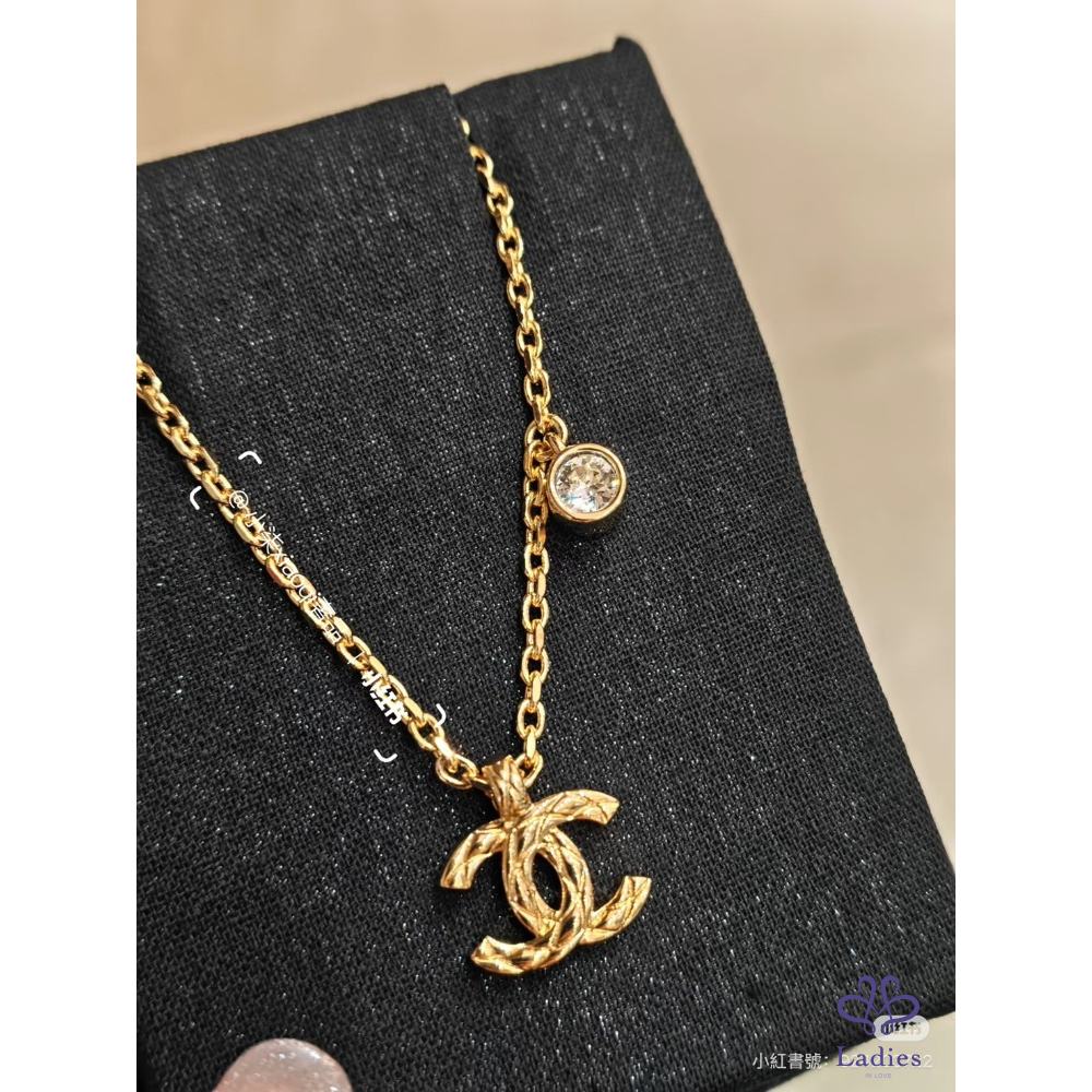最新爆款 Chanel 26P 菱格刻紋外雙C標誌金色項鏈