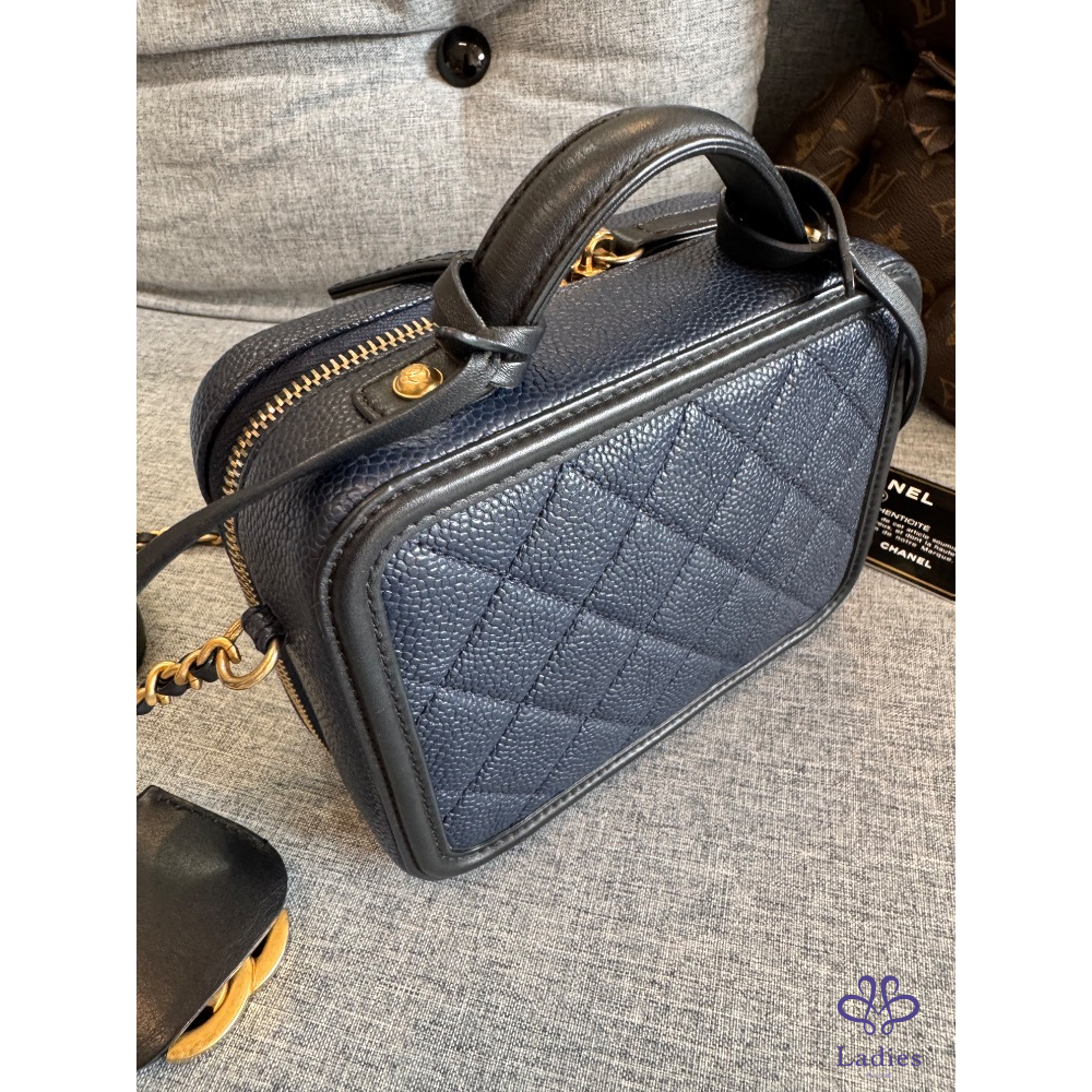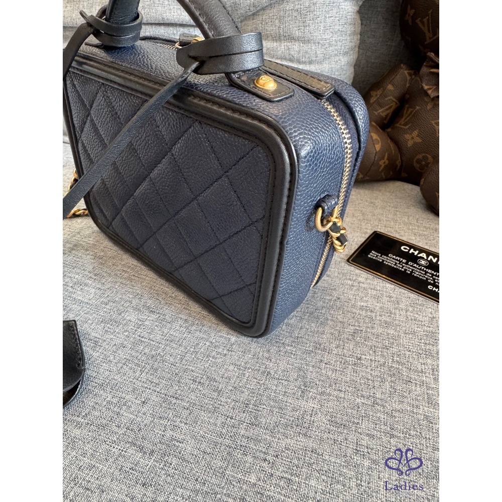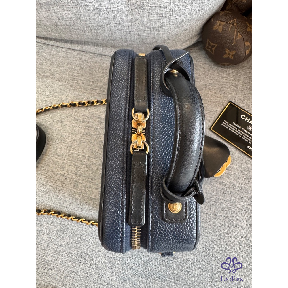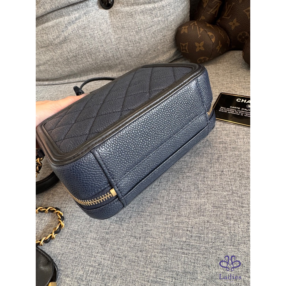 🍬🍡售 Chanel 荔枝皮海軍藍拼黑色牛皮化妝箱