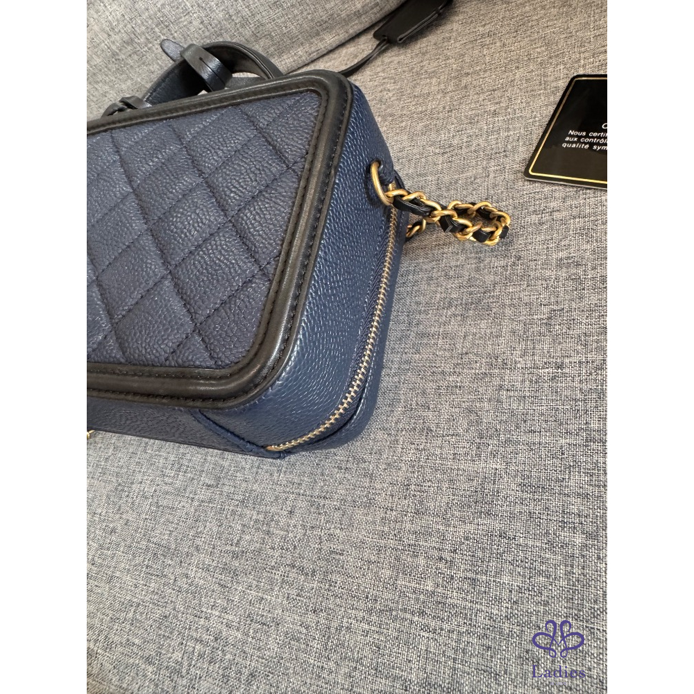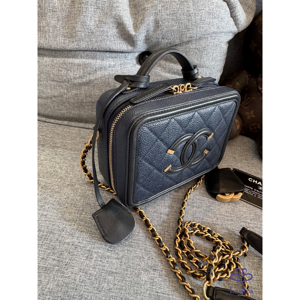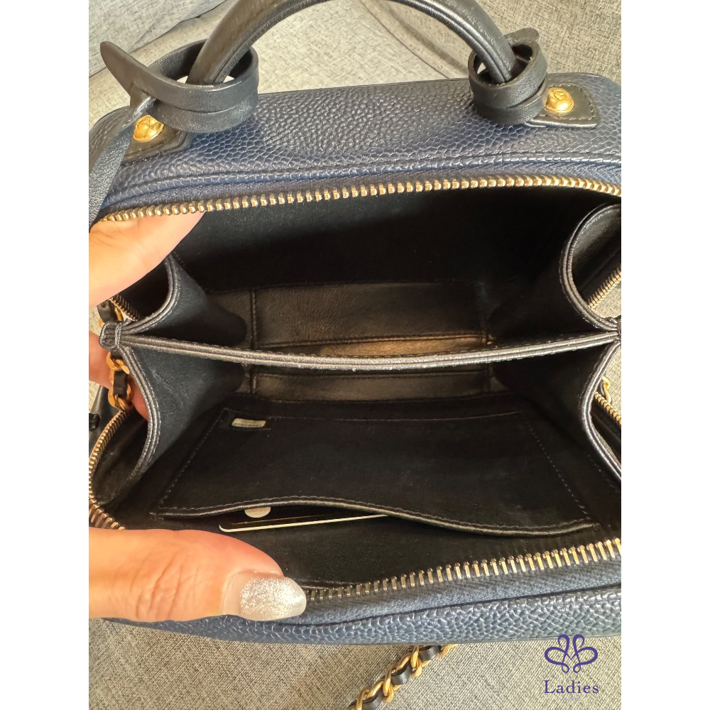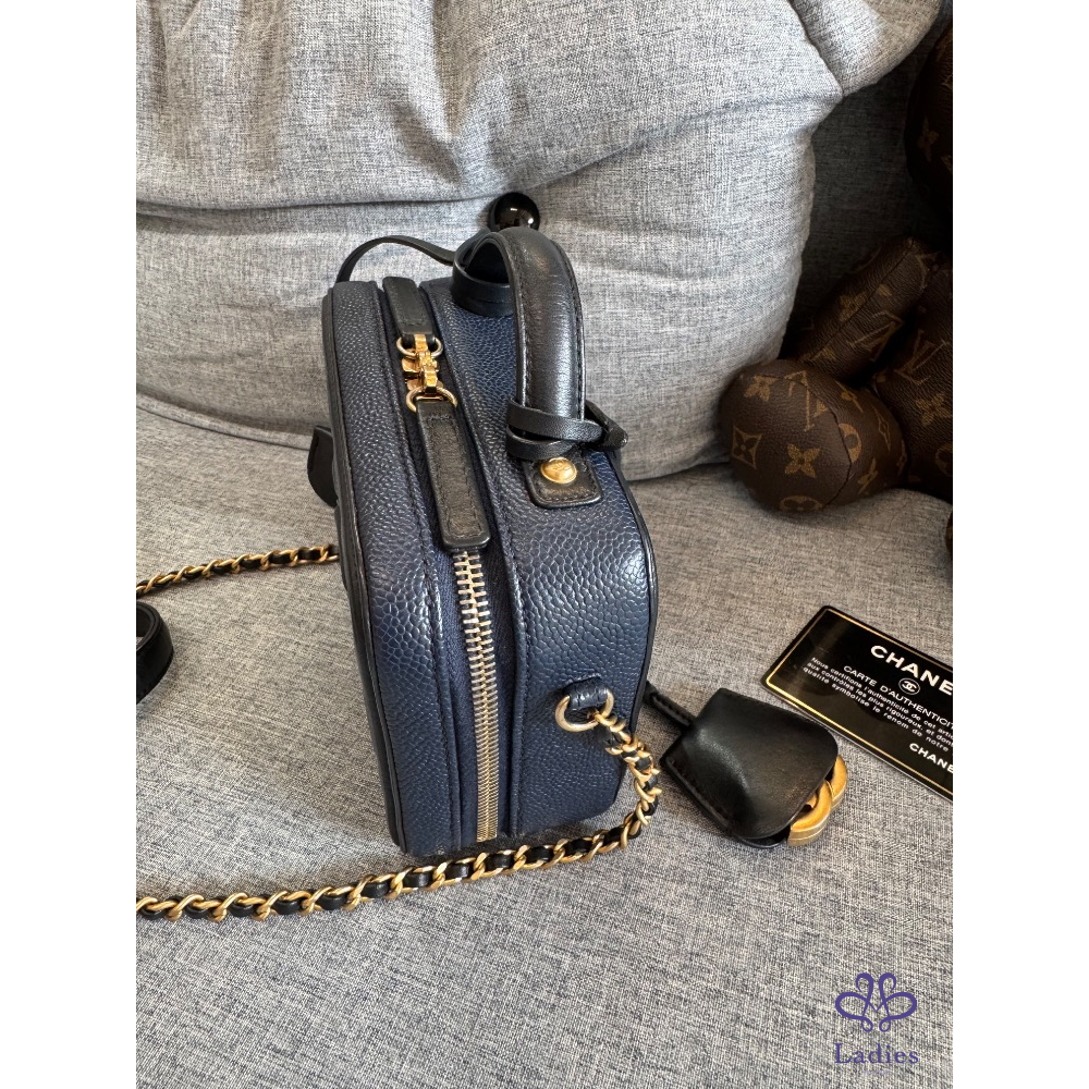 🍬🍡售 Chanel 荔枝皮海軍藍拼黑色牛皮化妝箱