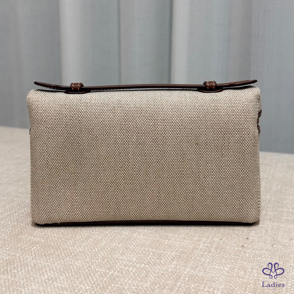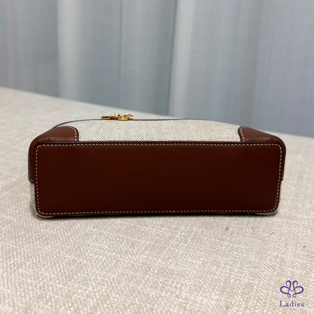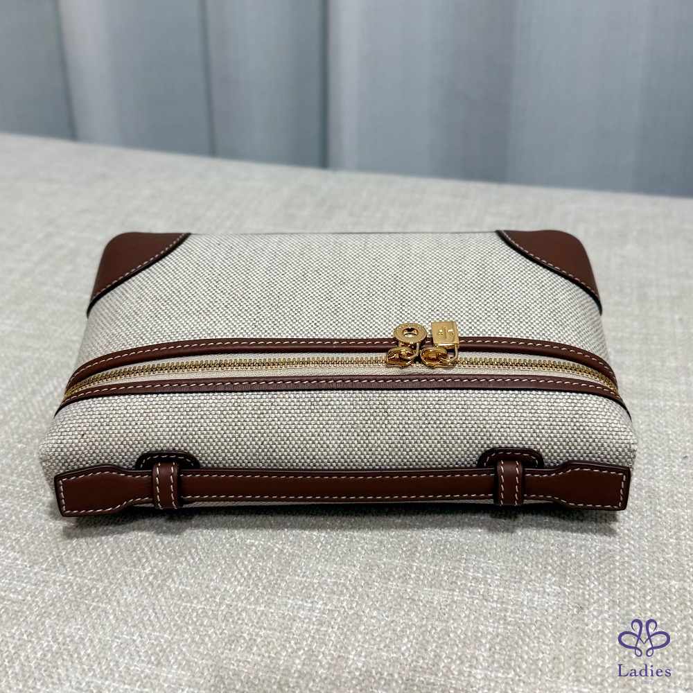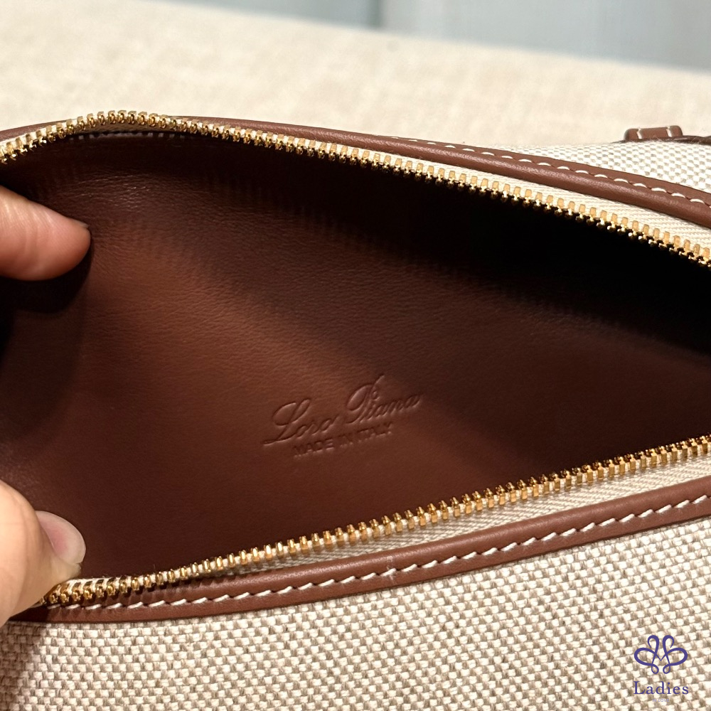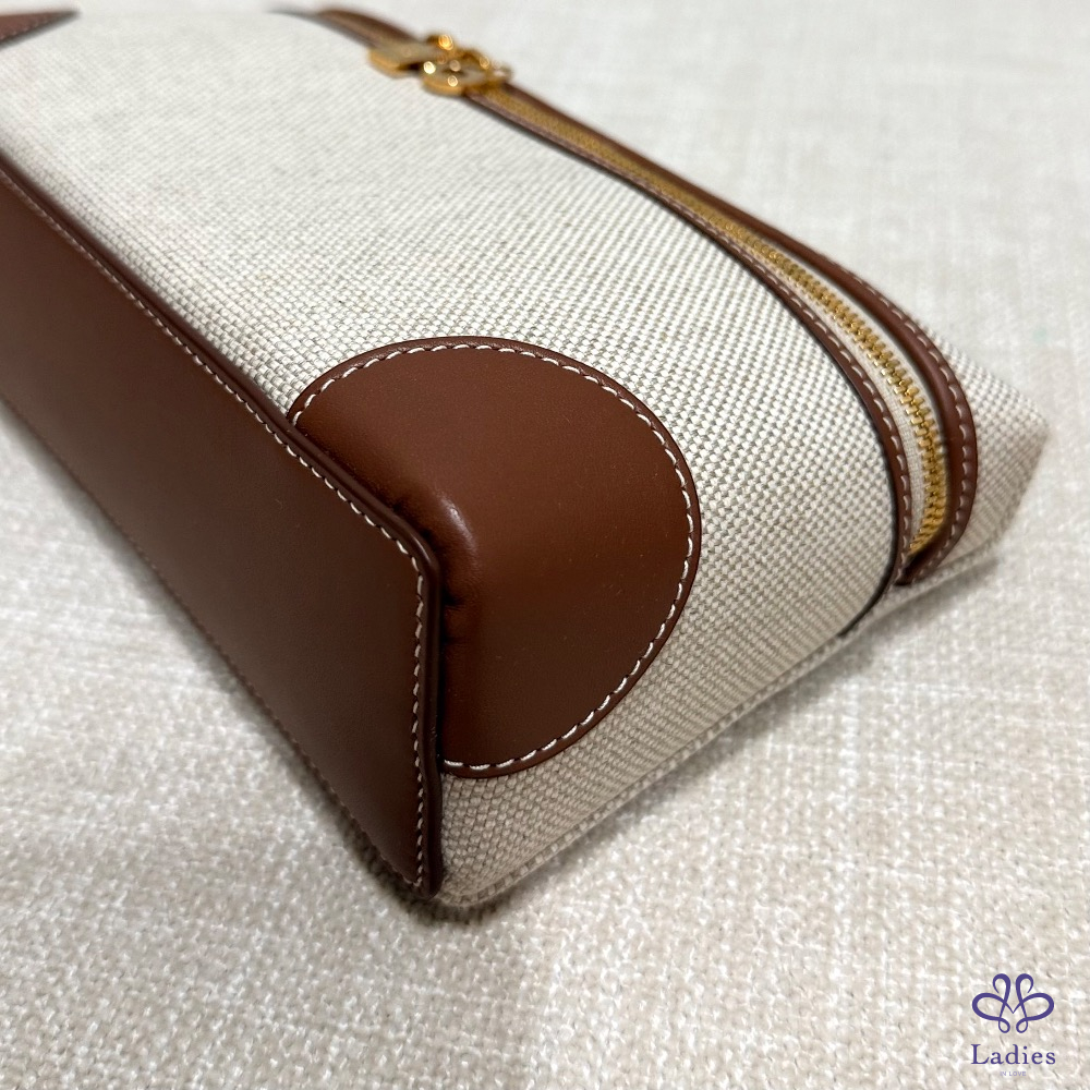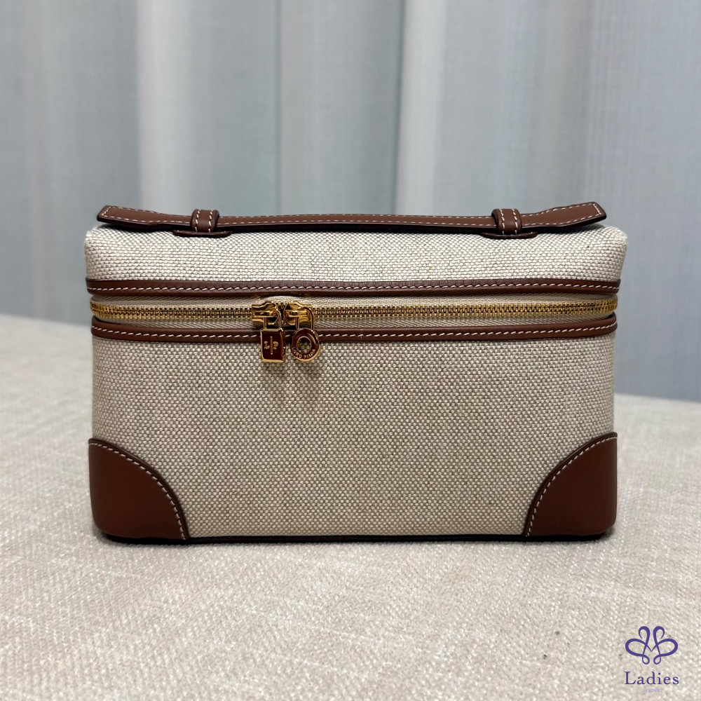 Loro Piana - Extra Pocket L19 金棕皮革拼帆布金釦 限定款 經典長型手把化妝盒