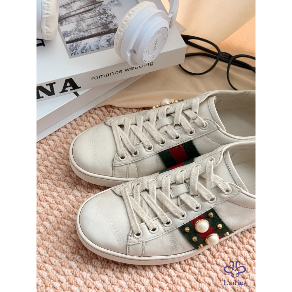 Gucci 古馳 珍珠小白鞋 36 碼 下地一兩次 成色如圖