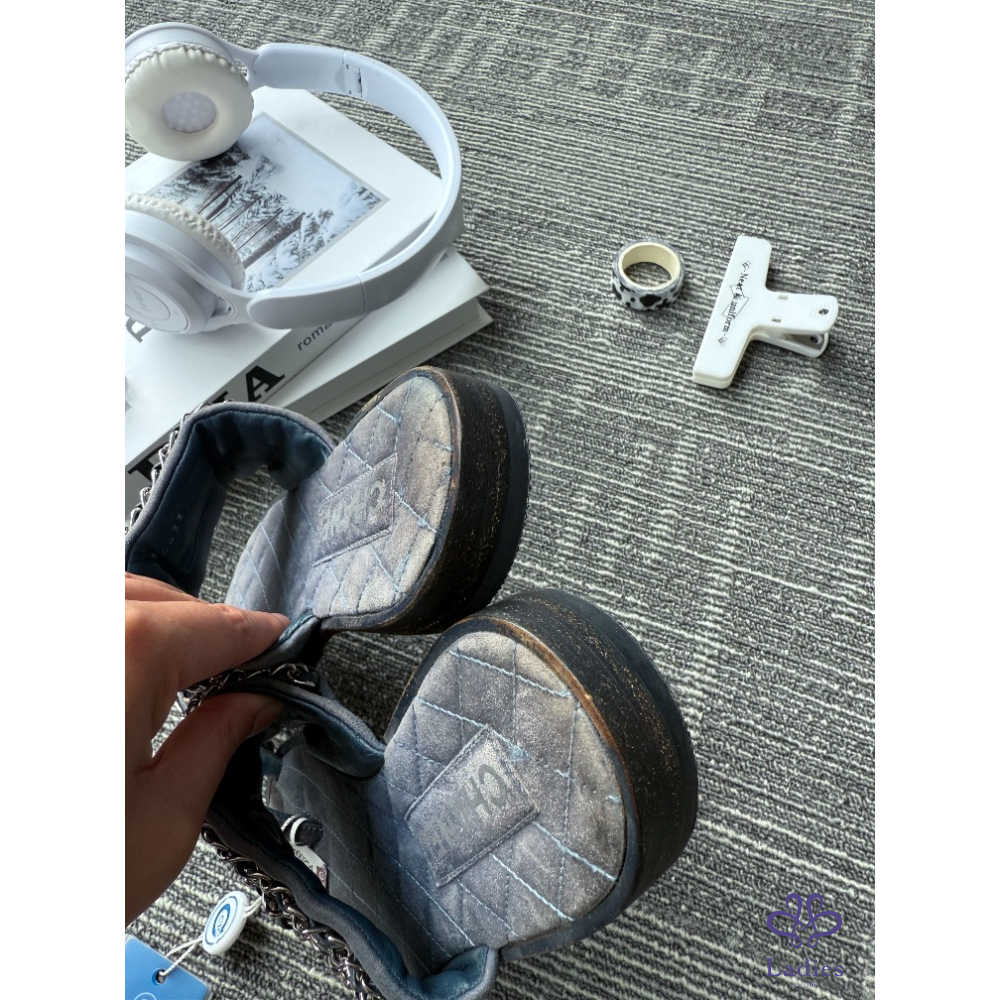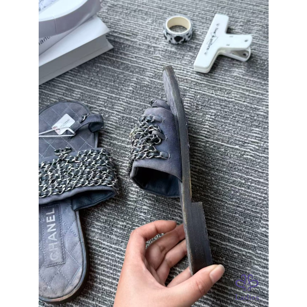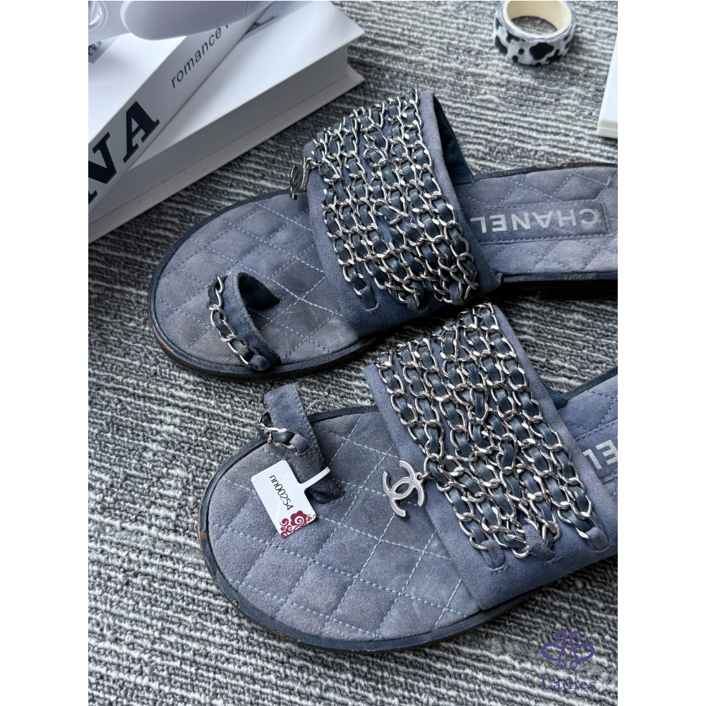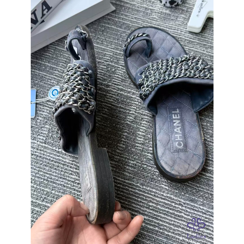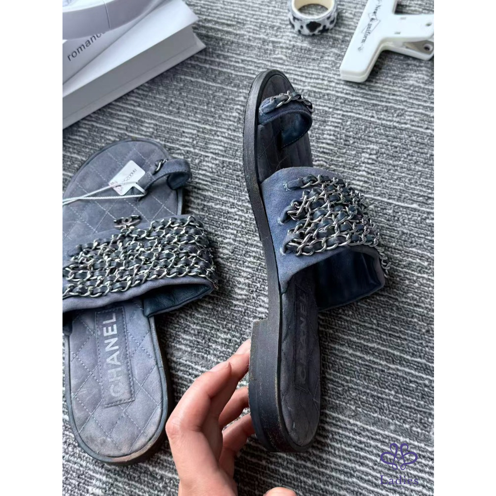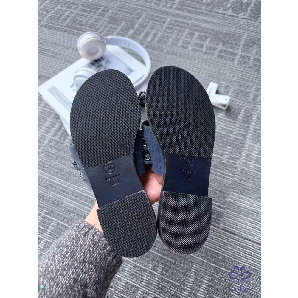首頁 精品女鞋 CHANEL香奈兒 軟底牛仔鏈條 拖鞋 36碼 成色如圖