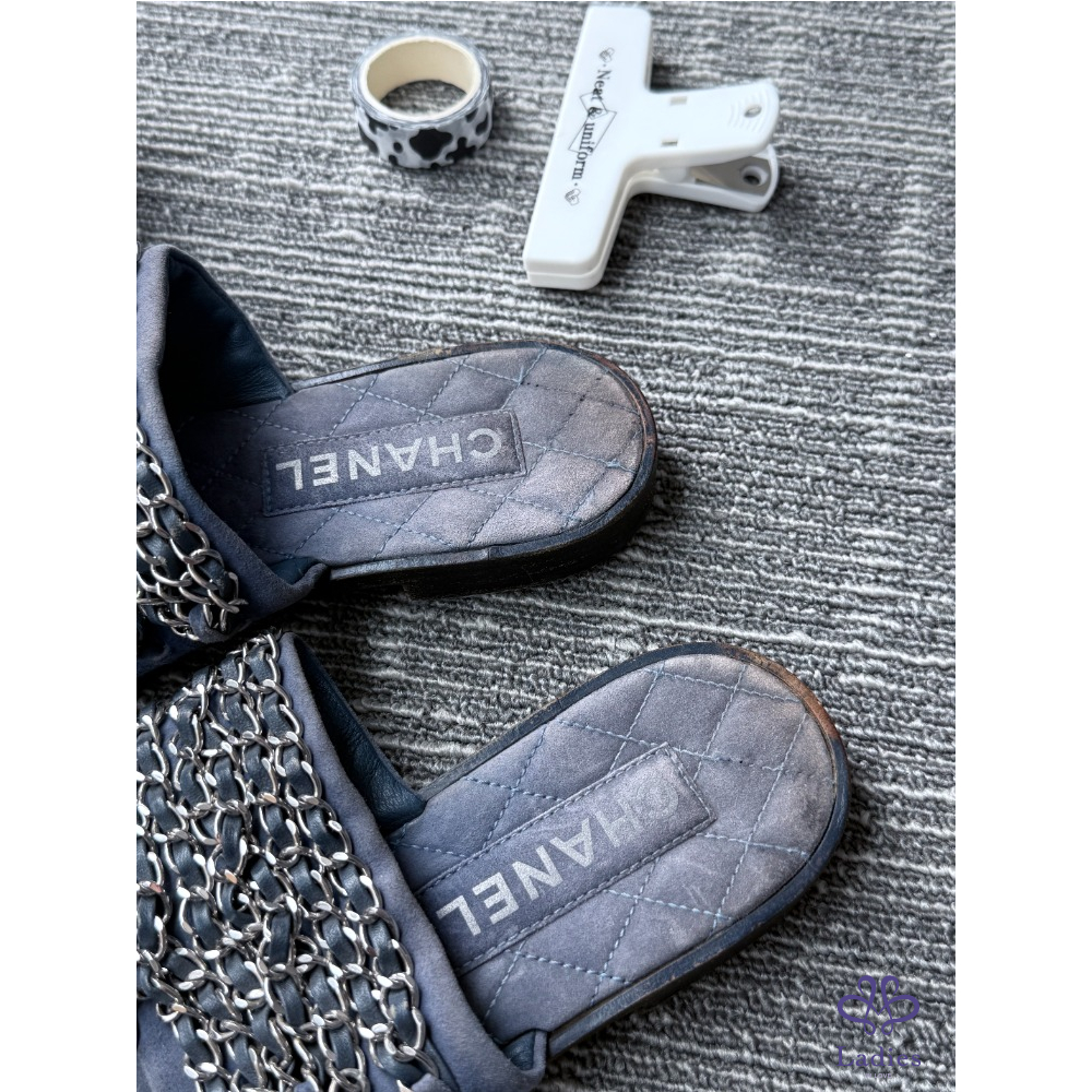 CHANEL香奈兒 軟底牛仔鏈條 拖鞋 36碼 成色如圖