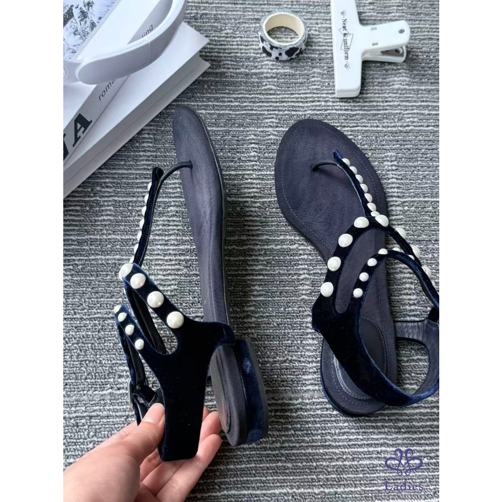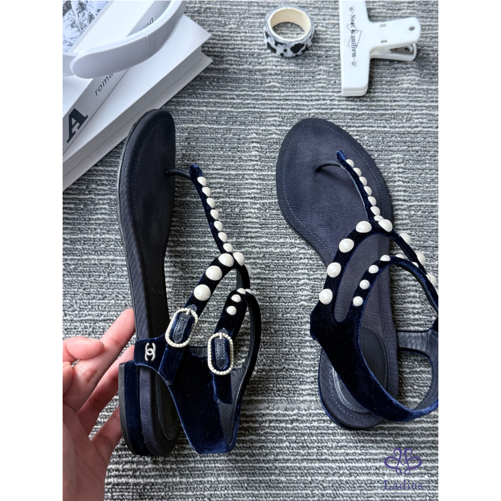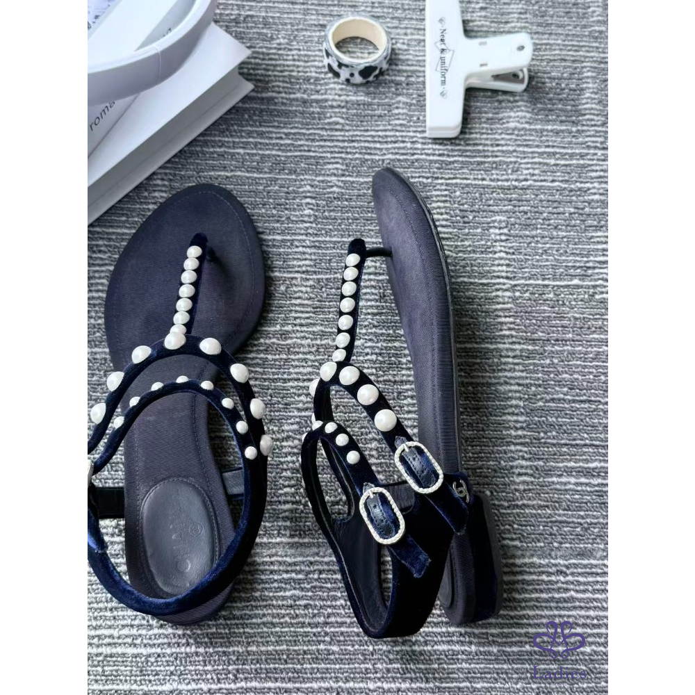首頁 精品女鞋 CHANEL 香奈兒 黑色珍珠涼鞋 36碼 成色如圖