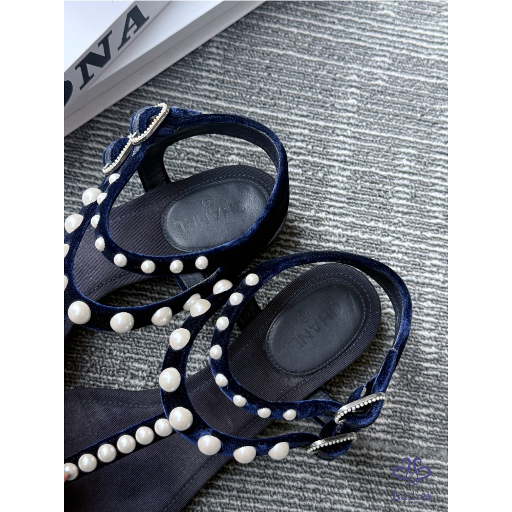 CHANEL 香奈兒 黑色珍珠涼鞋 36碼 成色如圖