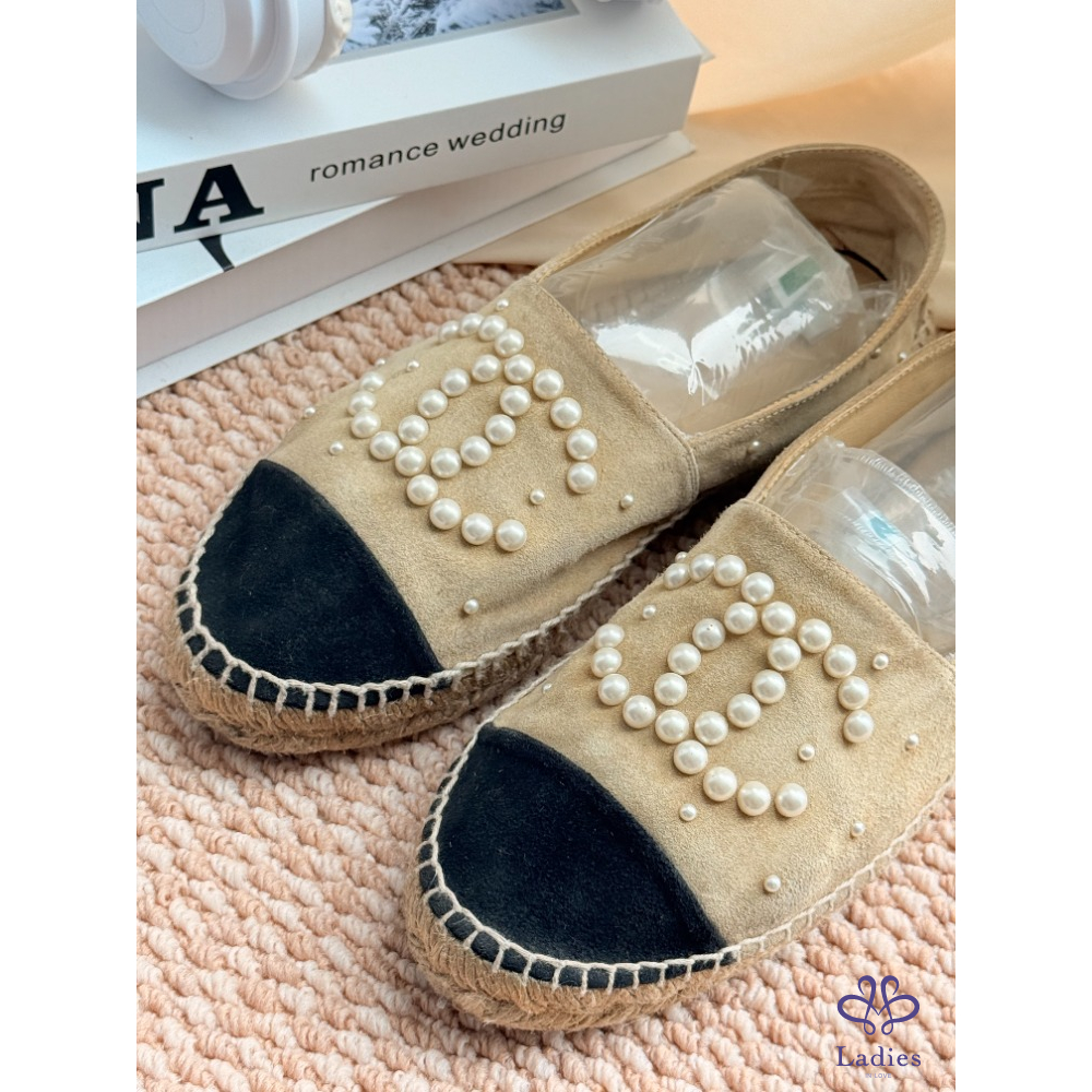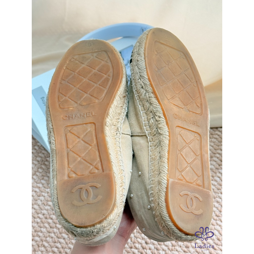 CHANNEL 香奈兒米色漁夫鞋 38碼 成色如圖