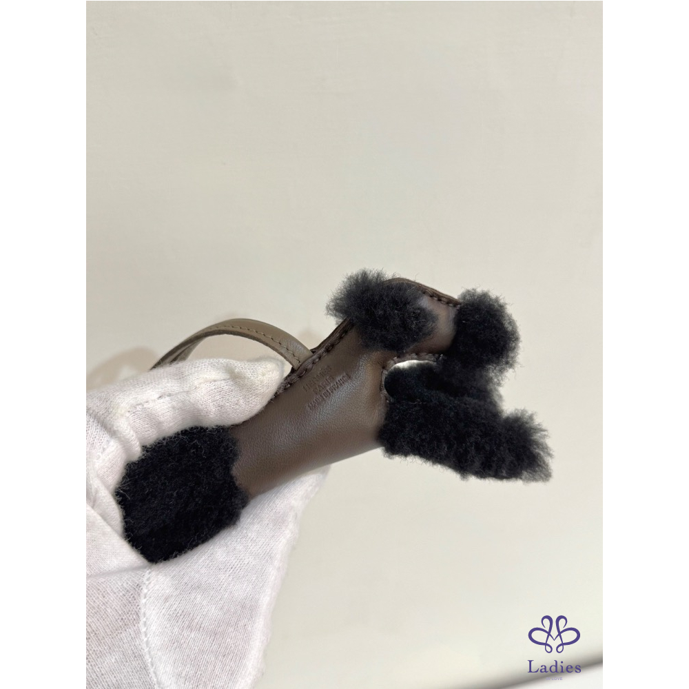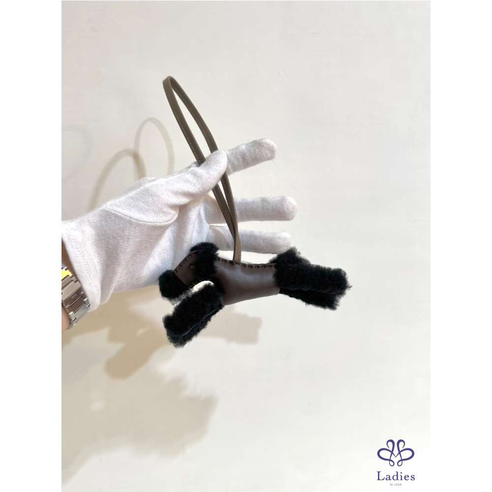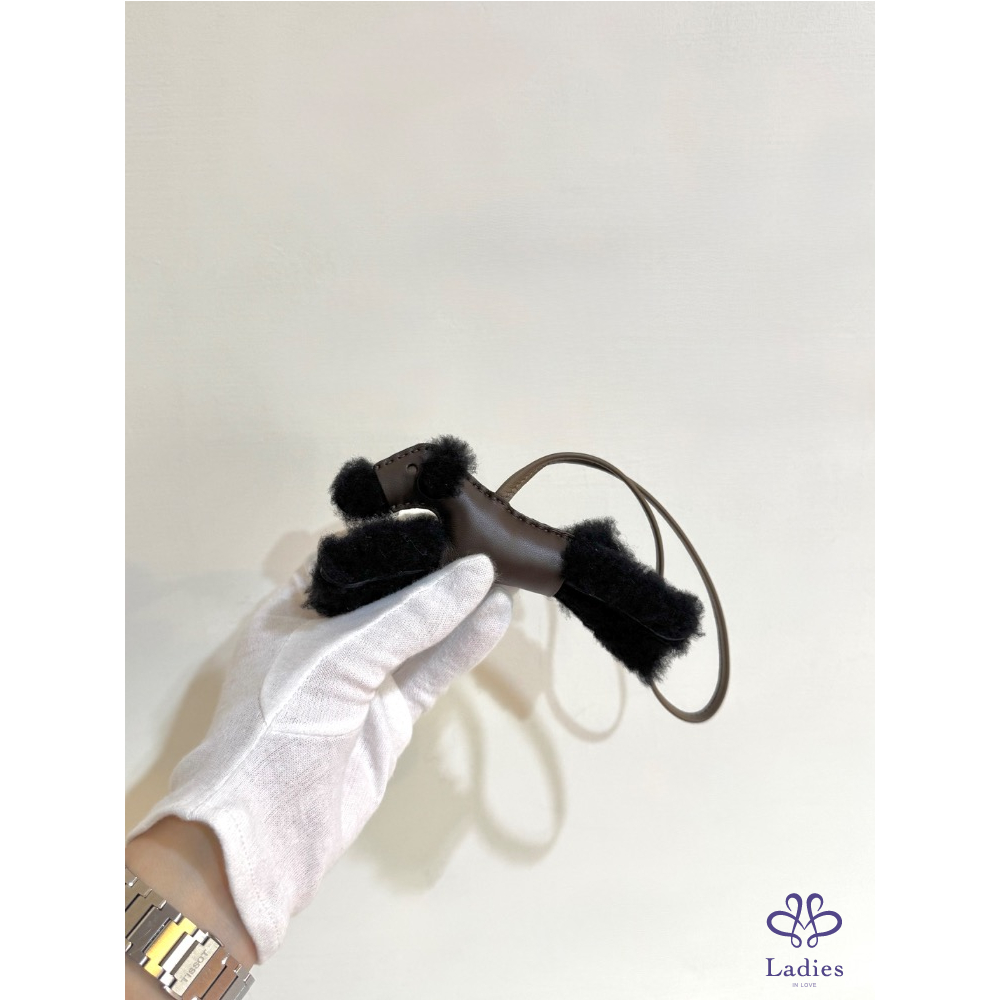 柔軟的黑色絨毛搭配溫潤巧克力色皮革,毛感蓬鬆細緻,皮革質地溫柔高級,呈現出Hermès一貫的精緻工藝與質感。