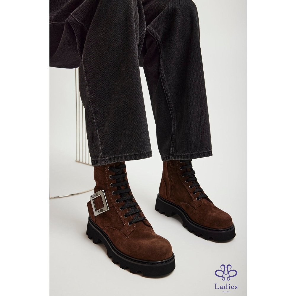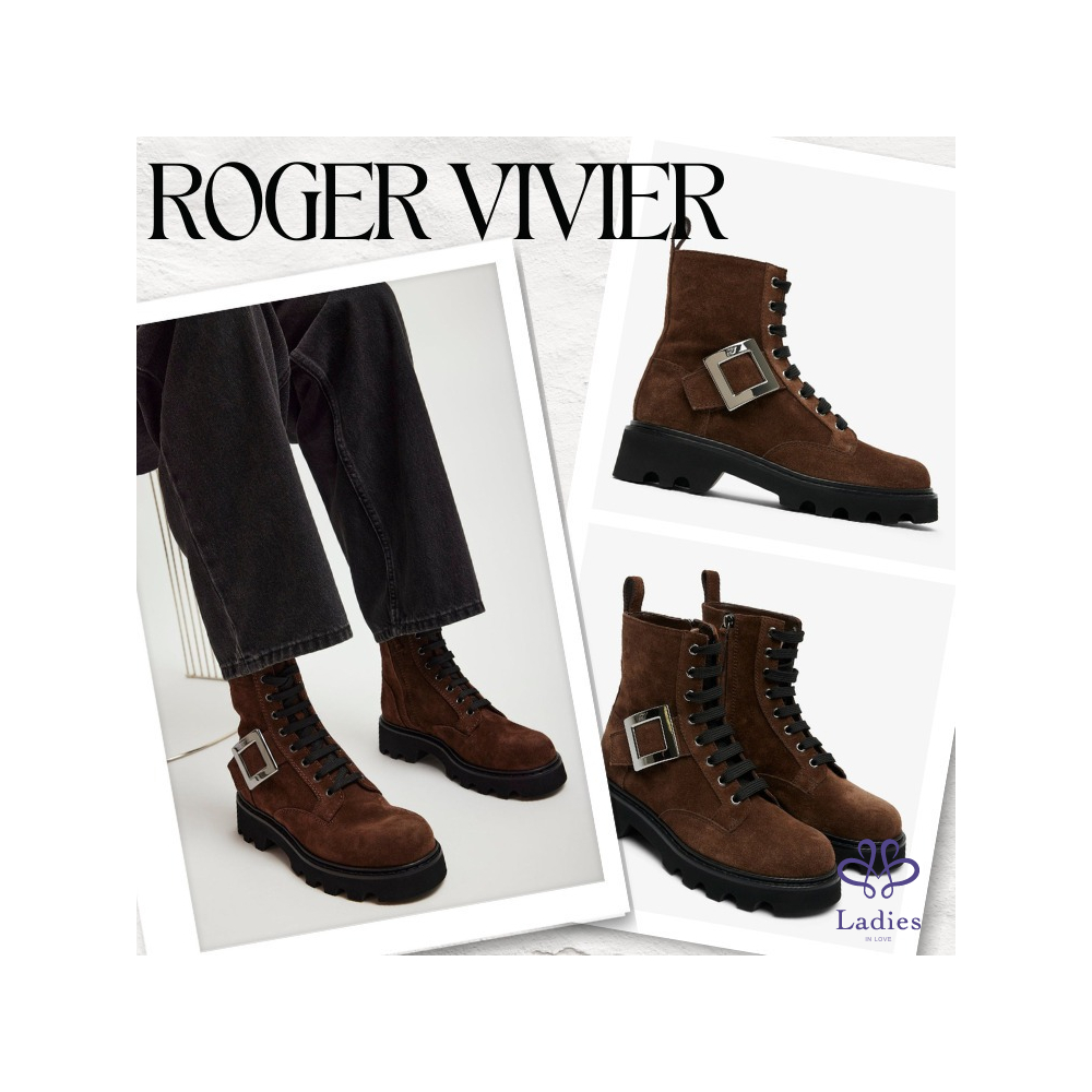 全新 Roger Vivier Viv Rangers 方釦厚底綁帶機車靴