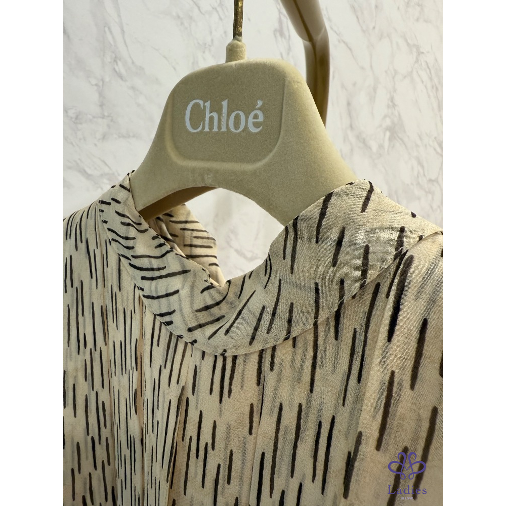 ❤️Chole風琴折雨紋真絲下擺鉅齒洋裝