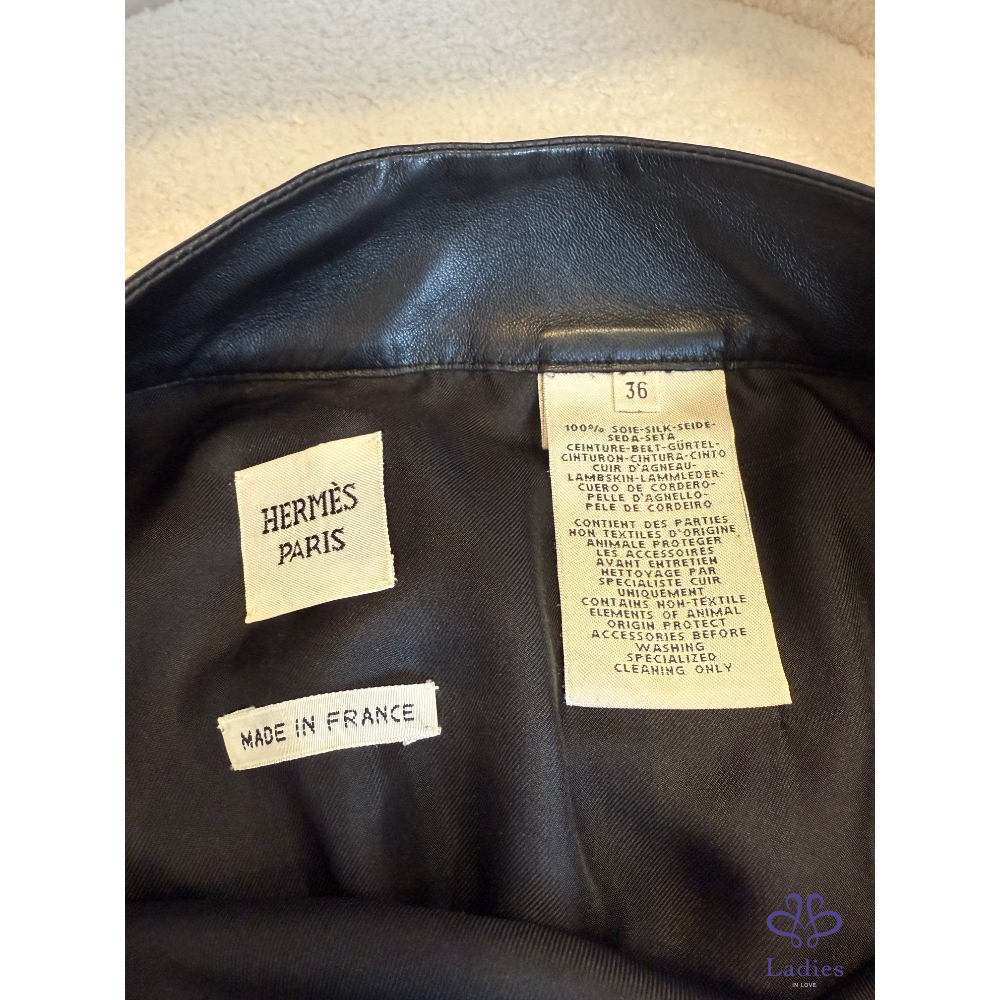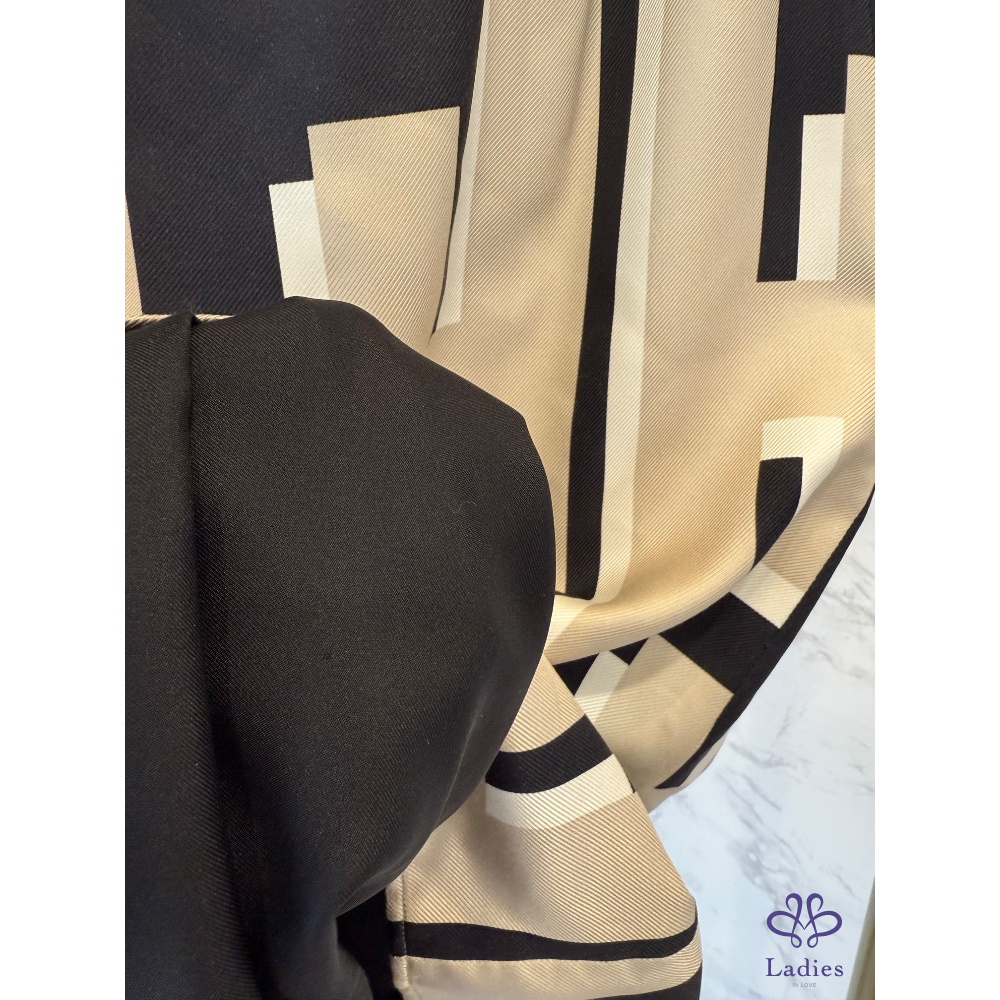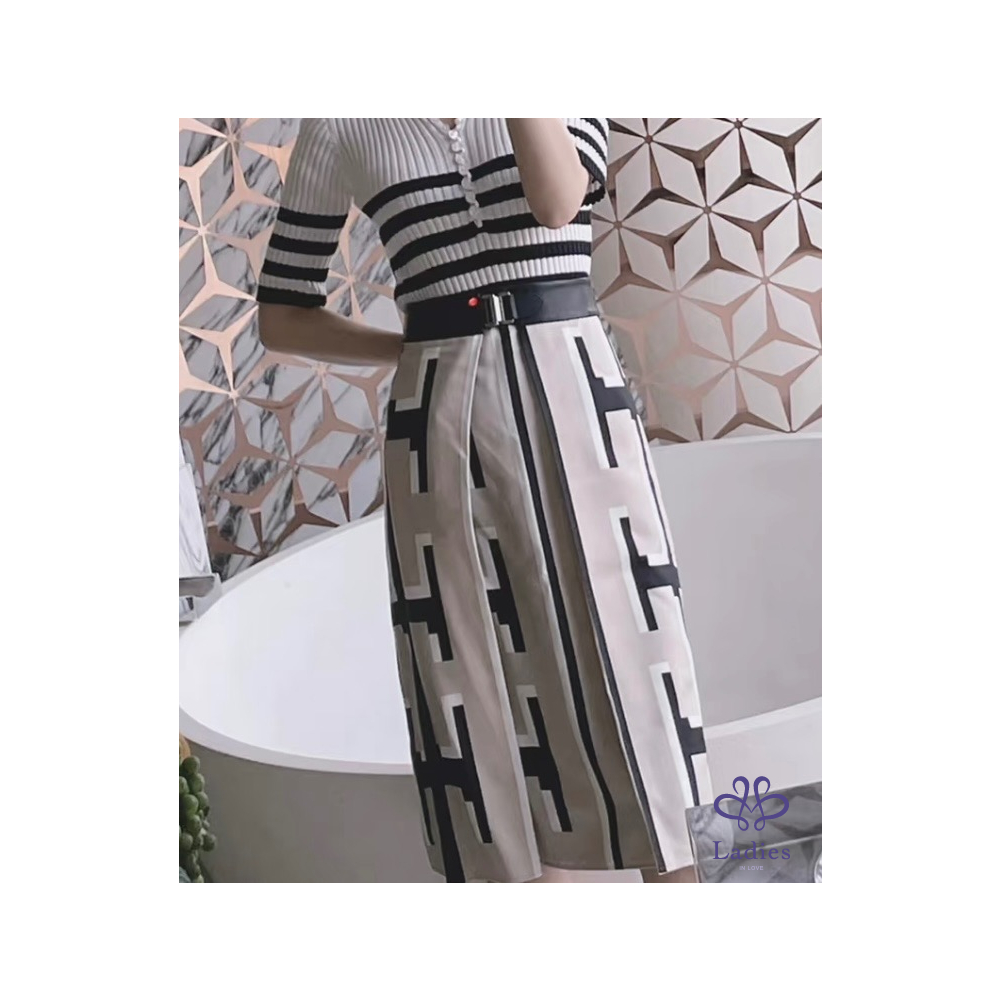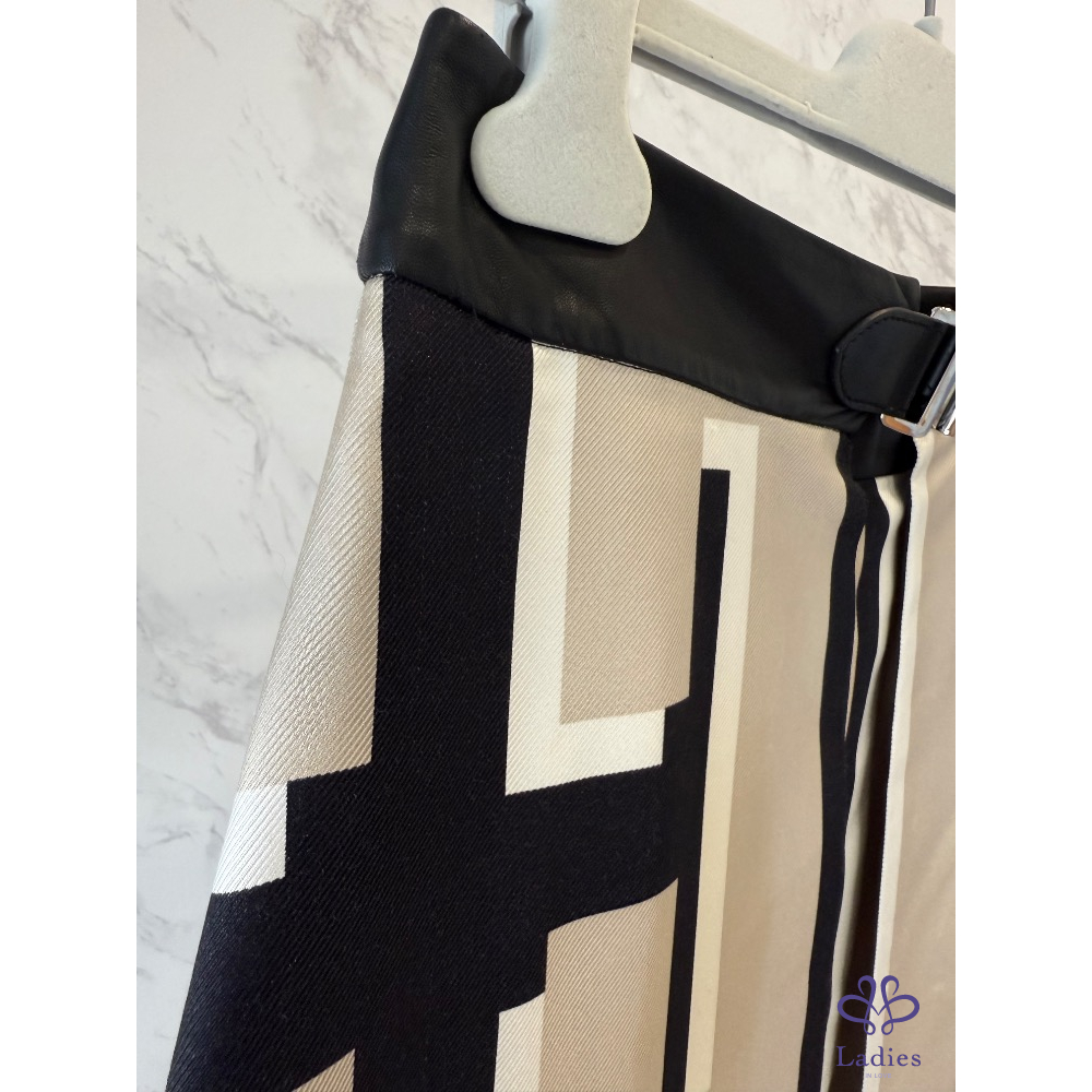 ❤️Hermes H卡其黑花皮革腰真絲裙