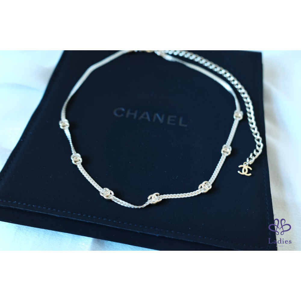 香奈兒Chanel 七花鎖骨項鍊 淡金 | 康朋白盒