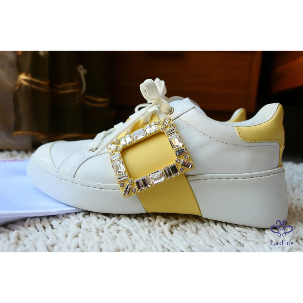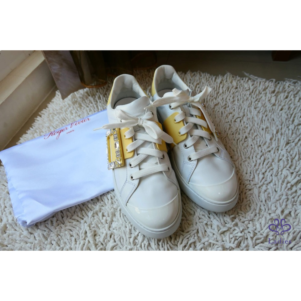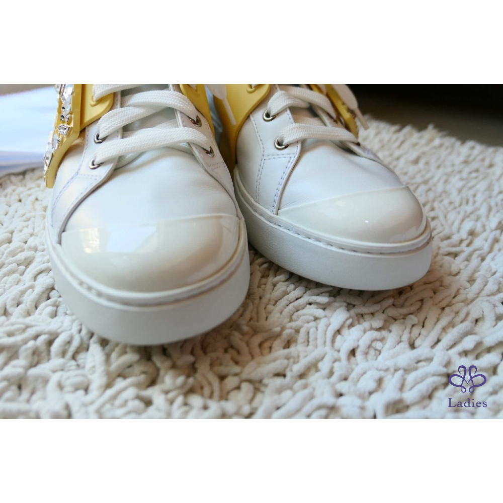 Viv' Skate Strass鵝黃色鑽扣小白鞋 牛皮運動鞋 SIZE:39