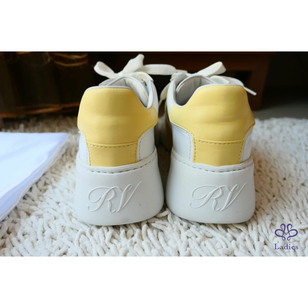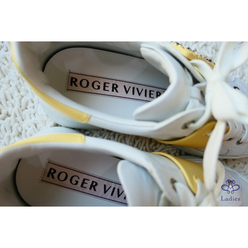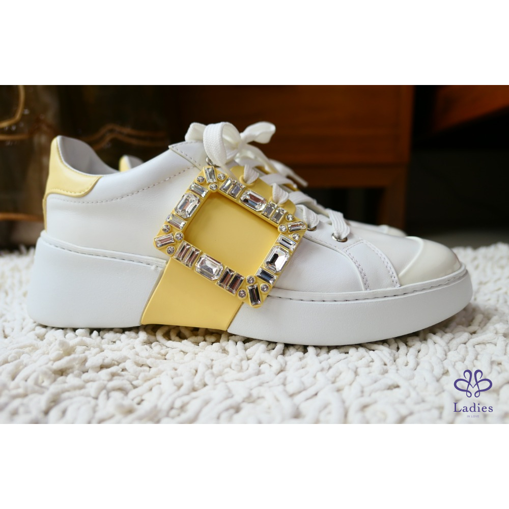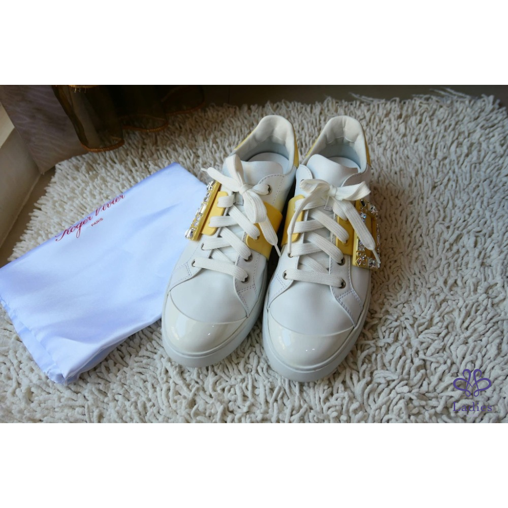 Viv' Skate Strass鵝黃色鑽扣小白鞋 牛皮運動鞋 SIZE:39