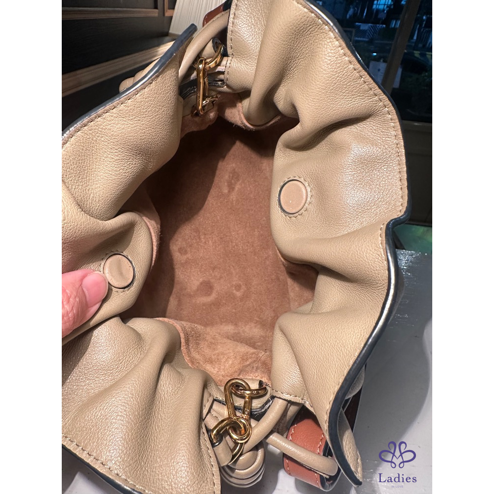 外表完美沒有痕跡、四角沒有磨損、內裡麂皮有一點深淺不一、已送洗過,整體乾淨