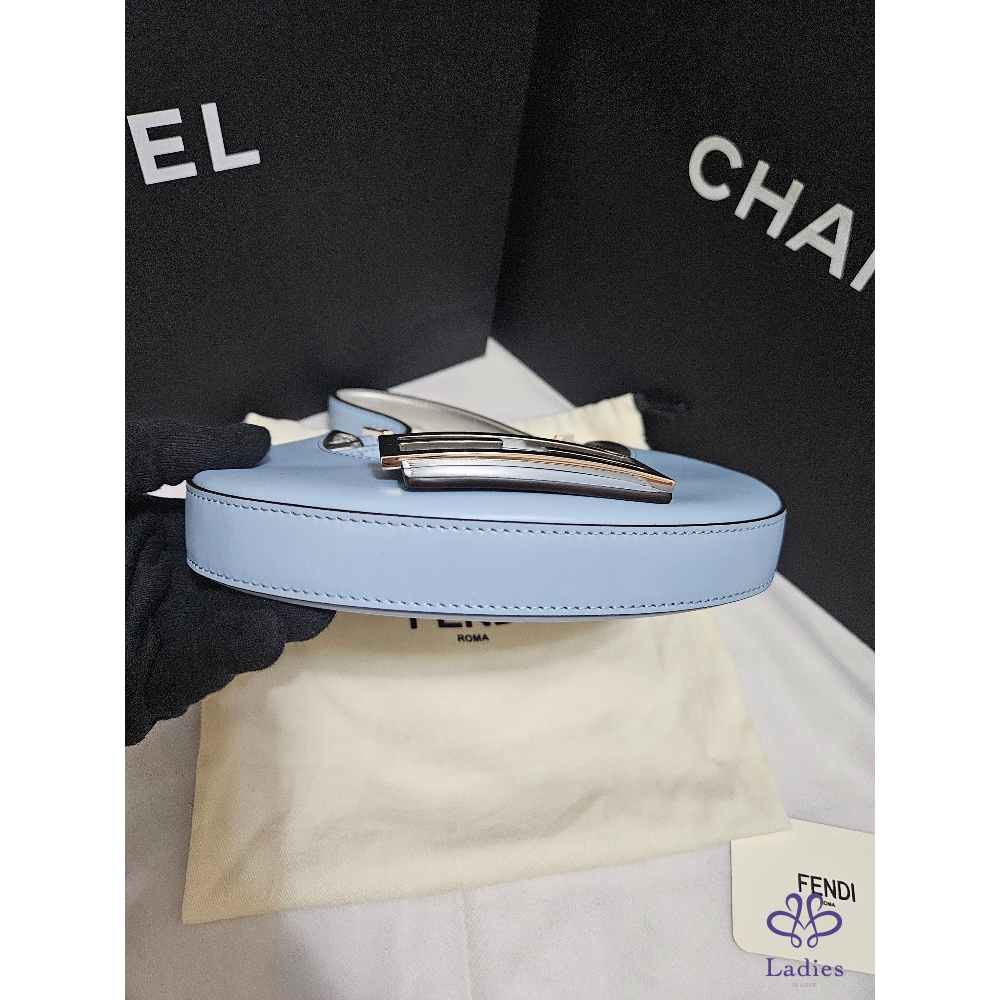 經典F,品牌辨識度第一,氣質水藍色/粉藍色系/小牛皮,可上肩 背帶可拆,放手機.小夾.眼鏡都ok,網圖供參考