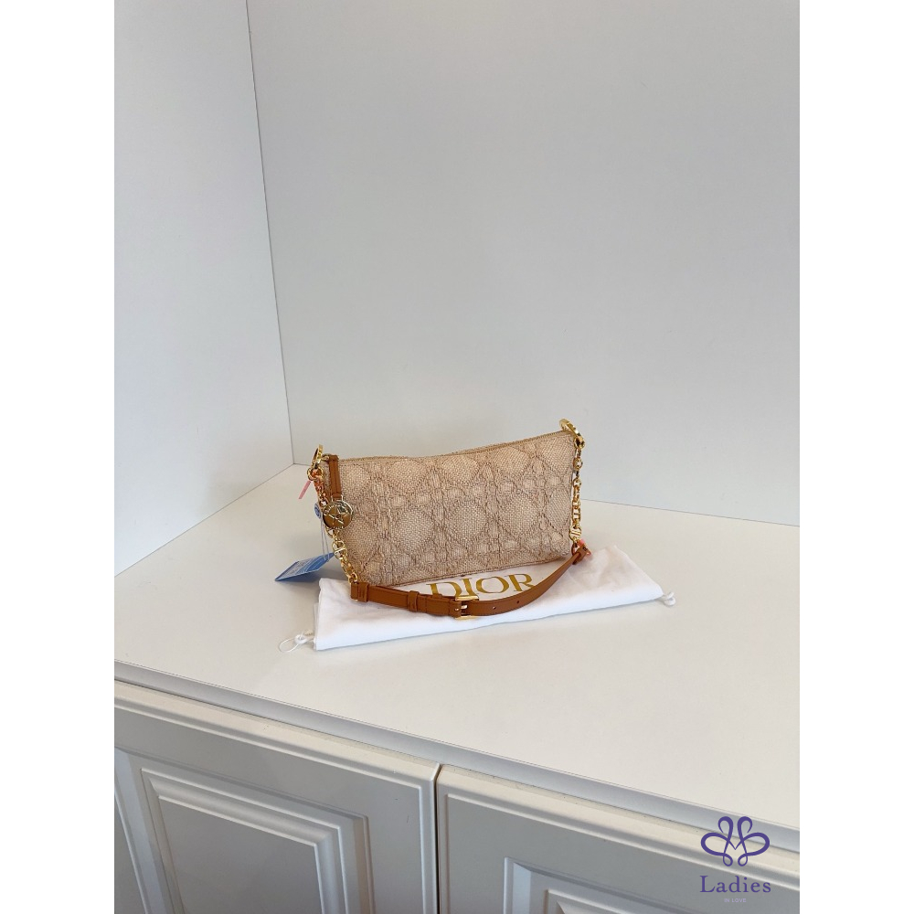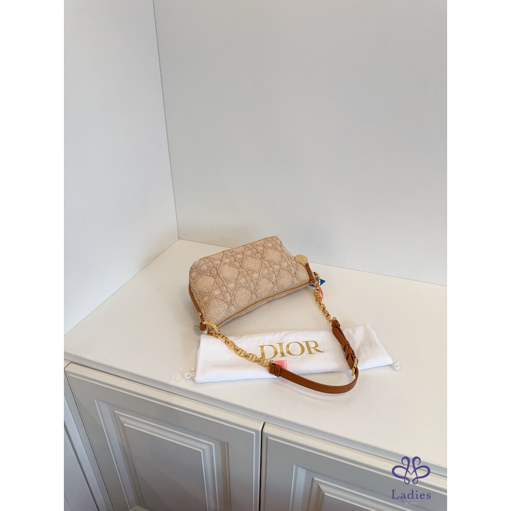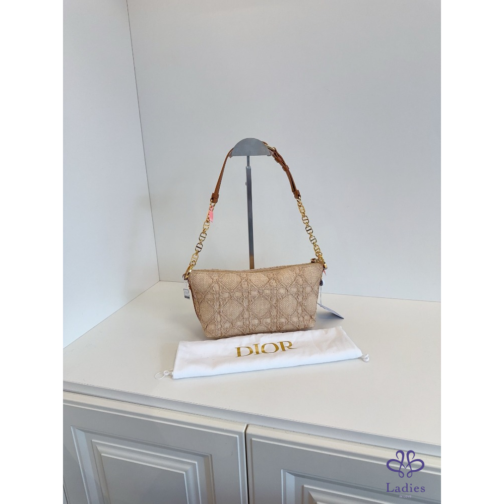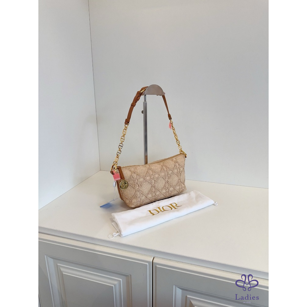 Dior 迪奧 DiorSTAR 拉菲草藤編 Hobo 鍊條便當包