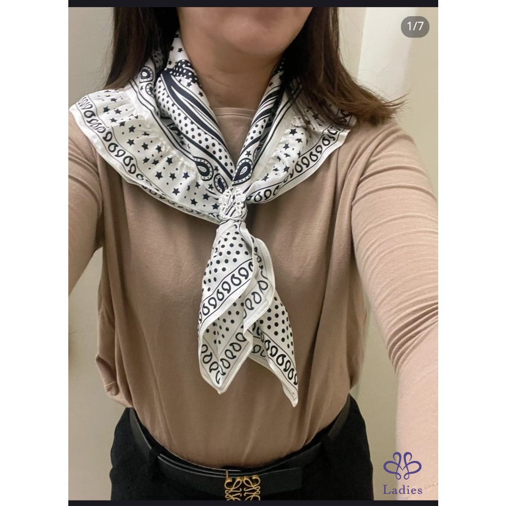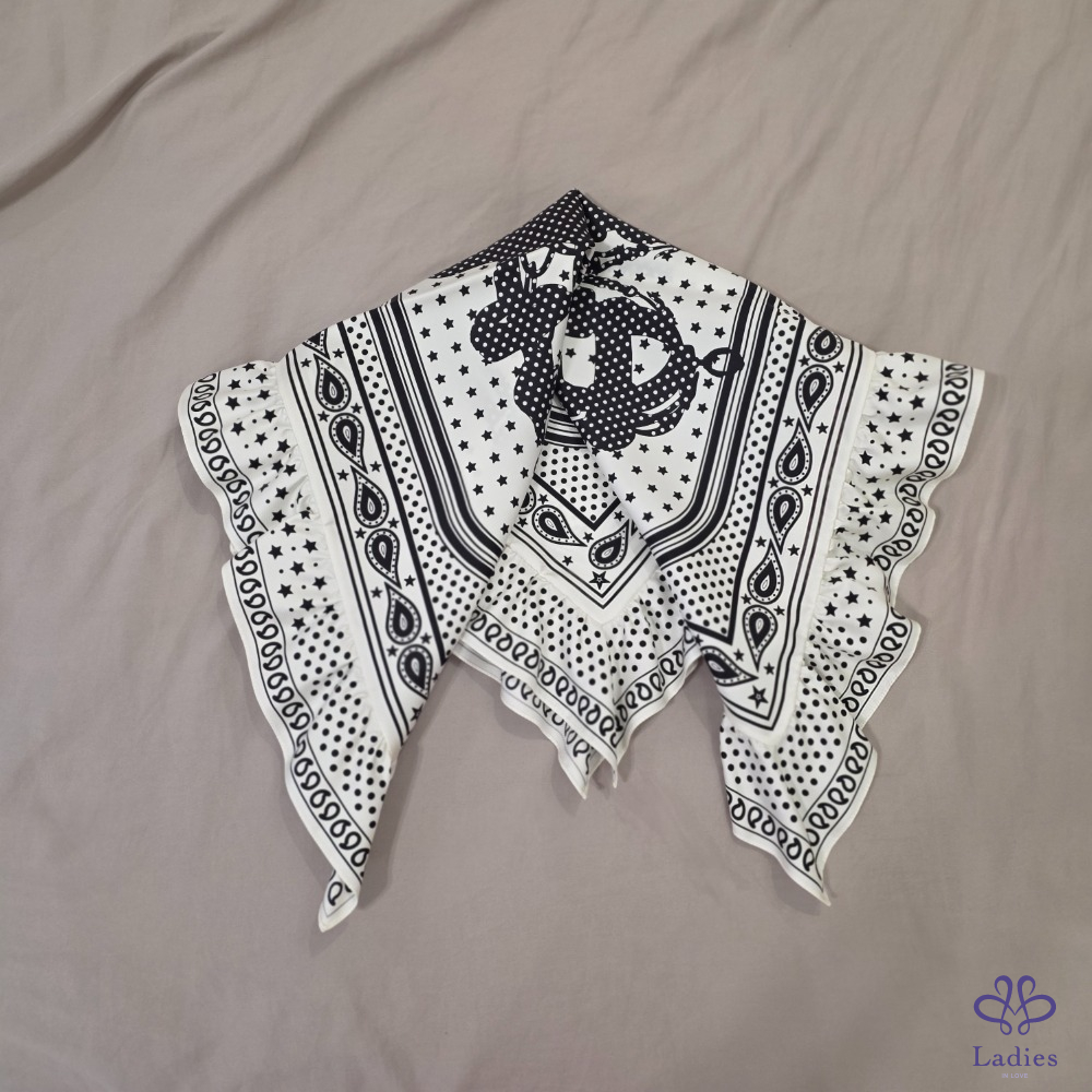 限量款式必須珍藏,配上荷葉邊的點綴,讓經典的絲巾帶點俏麗,穿上素色T-shirt 在配戴就非常有高級感,喜歡勿錯過