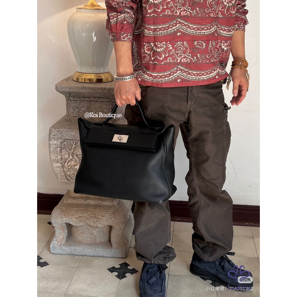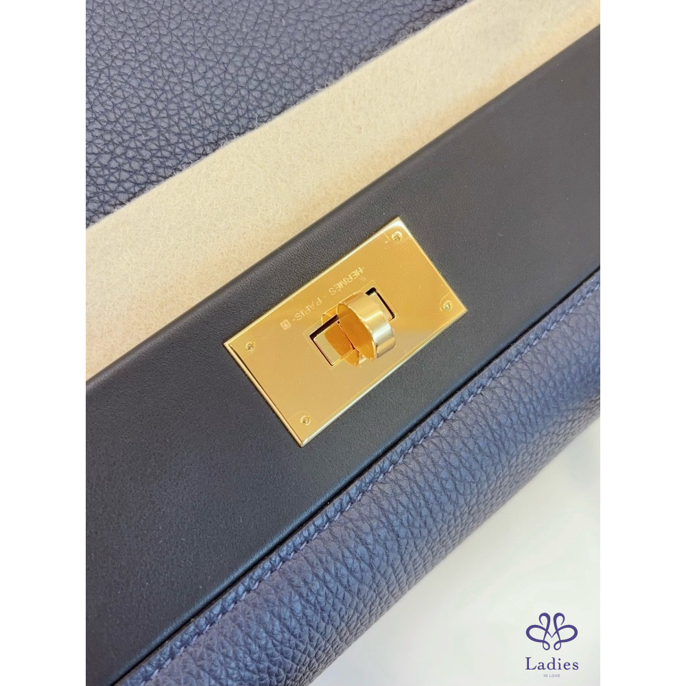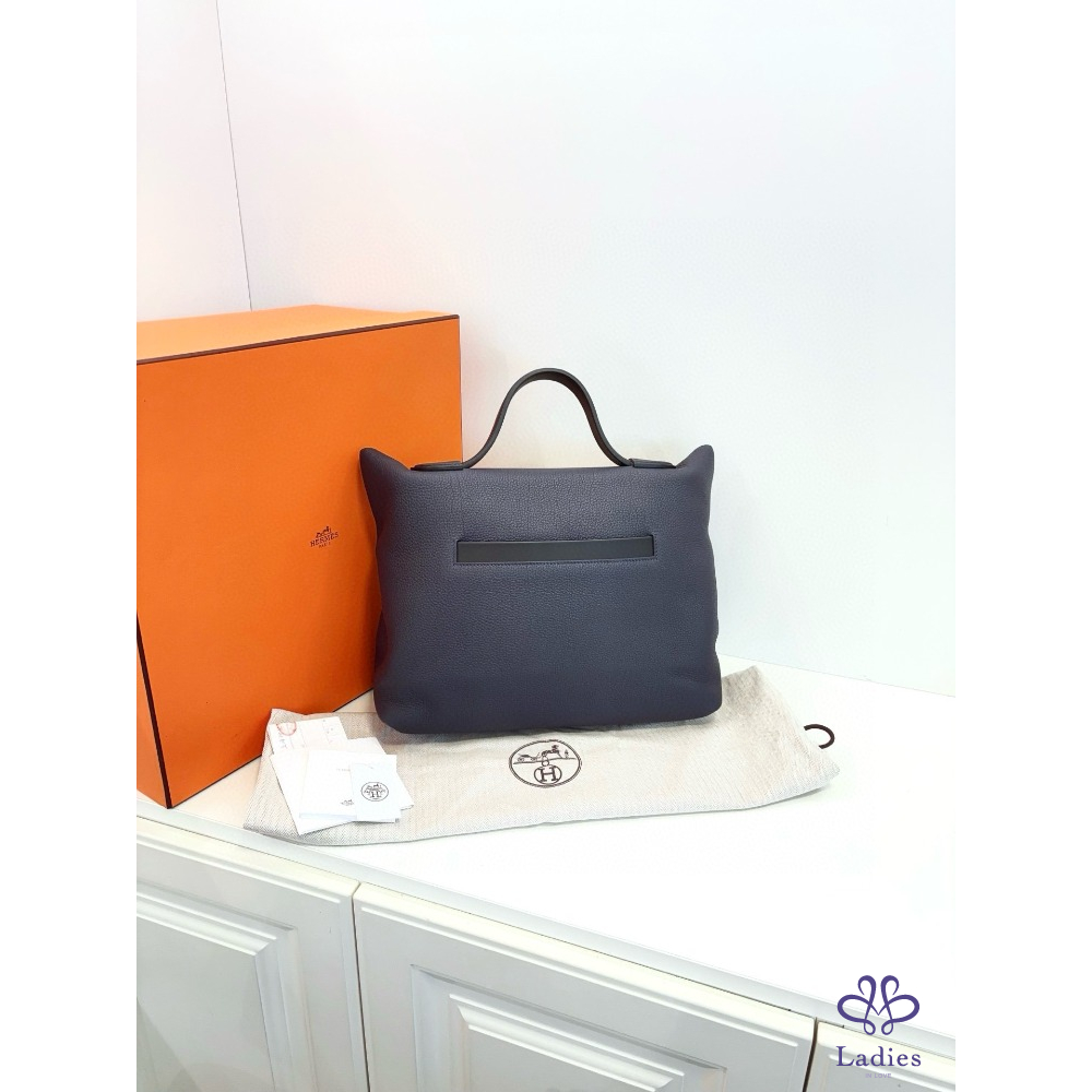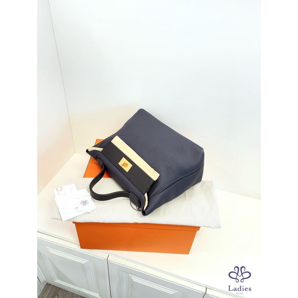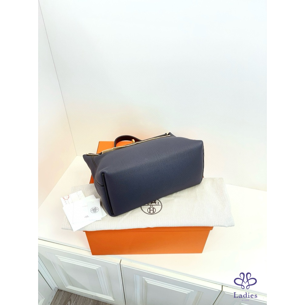 HERMES 愛馬仕 24午夜藍拼黑 金扣大號 手提包 Togo 拼 s 皮 D 刻