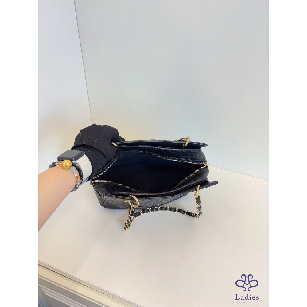 首頁 精品包包 CHANEL香奈兒 PTT 黑金荔枝皮 拉鍊小胖墩