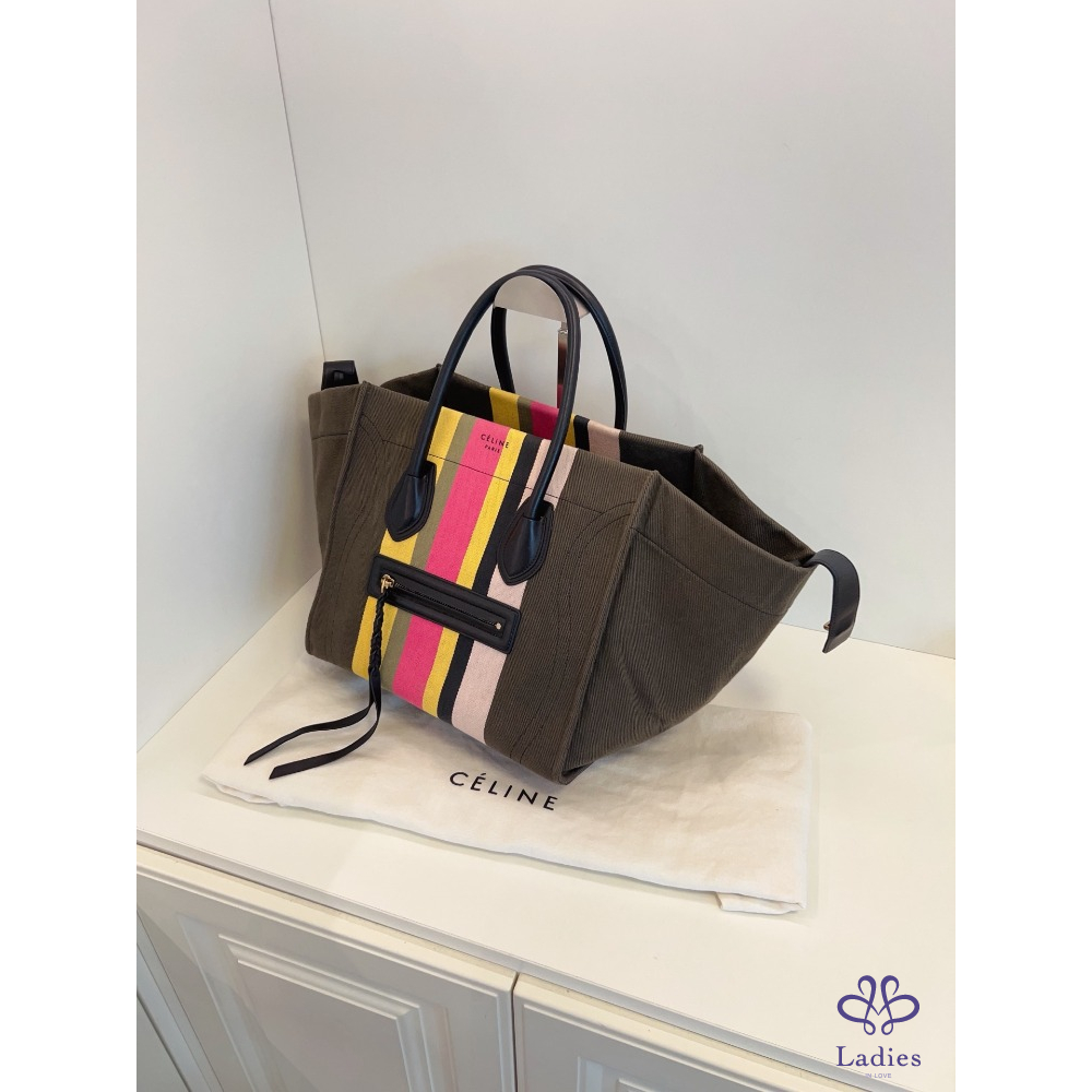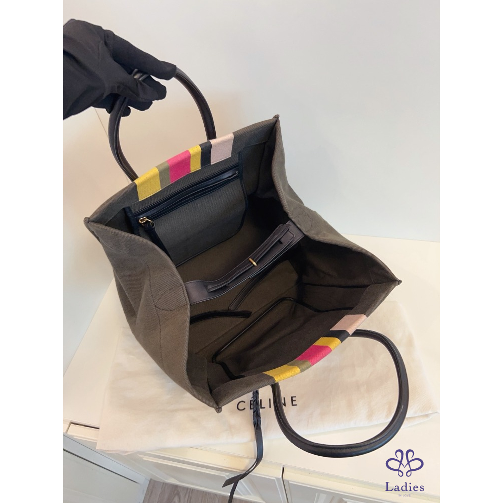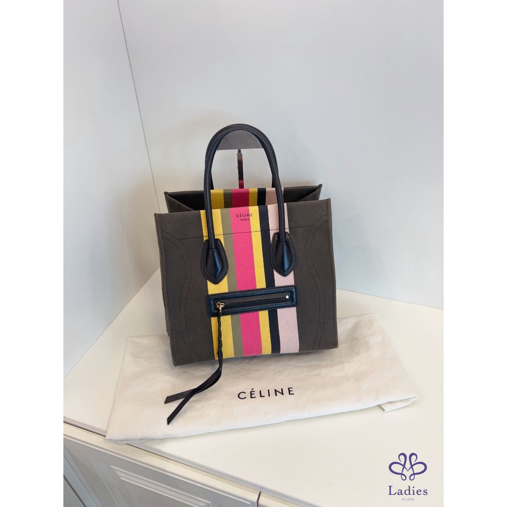 首頁 精品包包 CELINE 賽琳 彩條紋軍綠帆布 Luggage 蝙蝠笑臉包 托特手提包