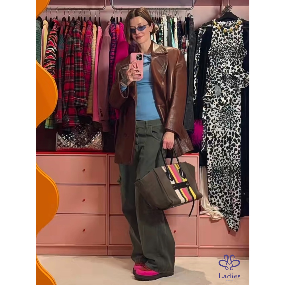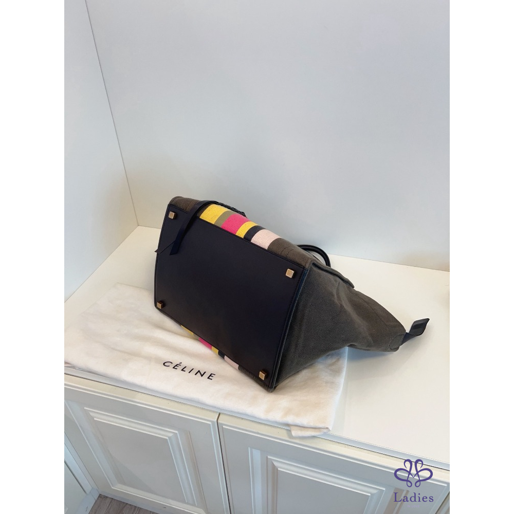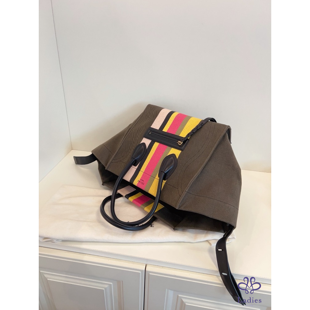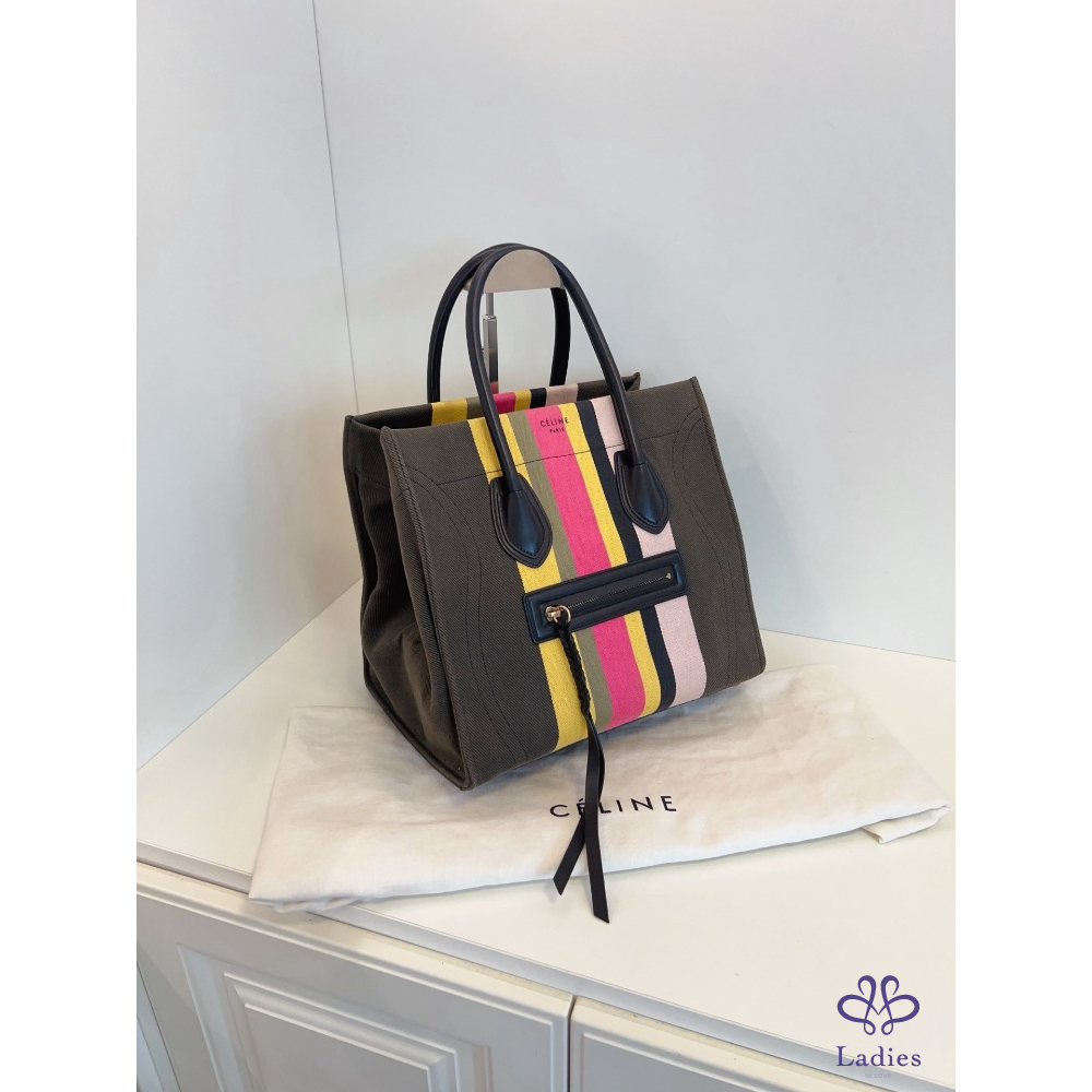 首頁 精品包包 CELINE 賽琳 彩條紋軍綠帆布 Luggage 蝙蝠笑臉包 托特手提包