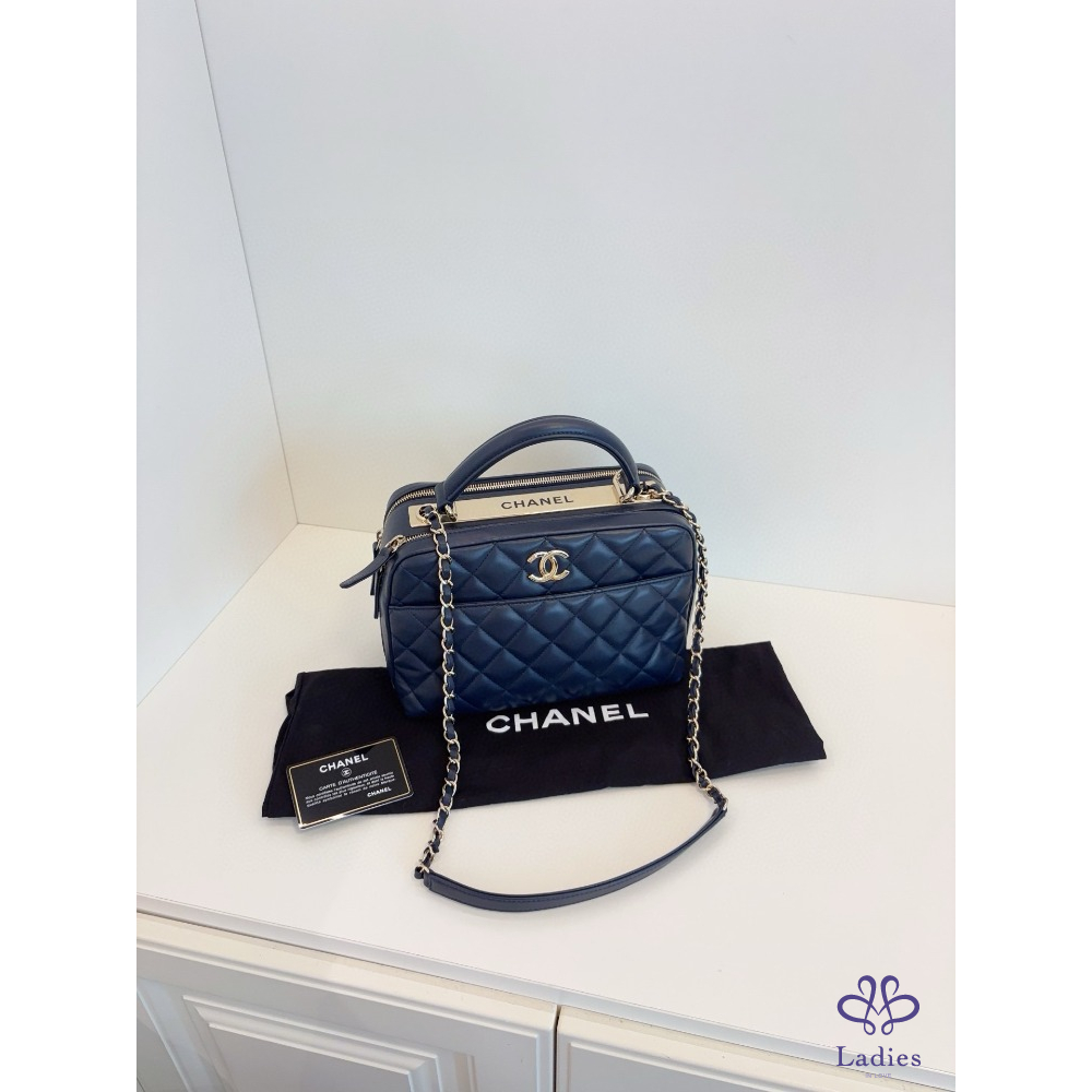 CHANEL香奈兒 Trendy cc 深藍金扣 保齡球 bowling 小號 20 開附卡