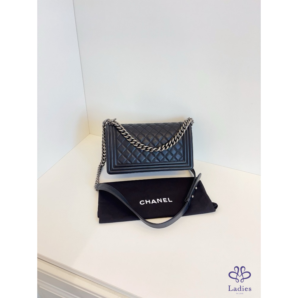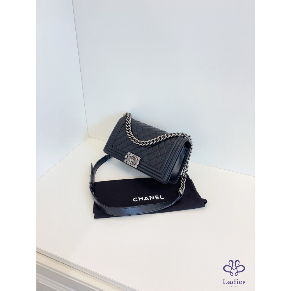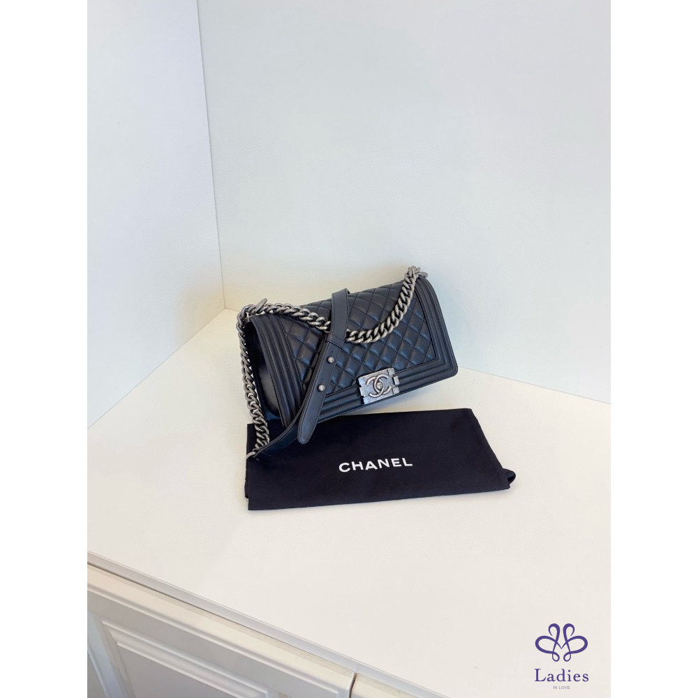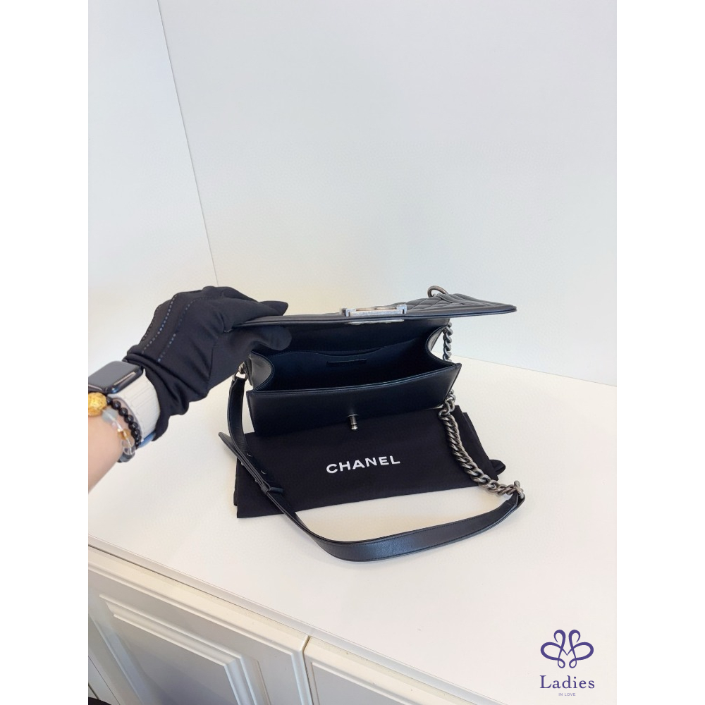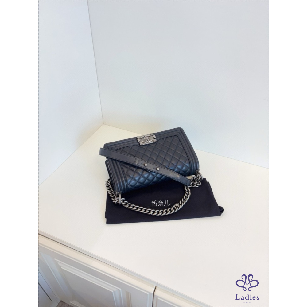 首頁 精品包包 CHANEL 香奈兒 黑銀牛皮 Leboy 中款 25 開