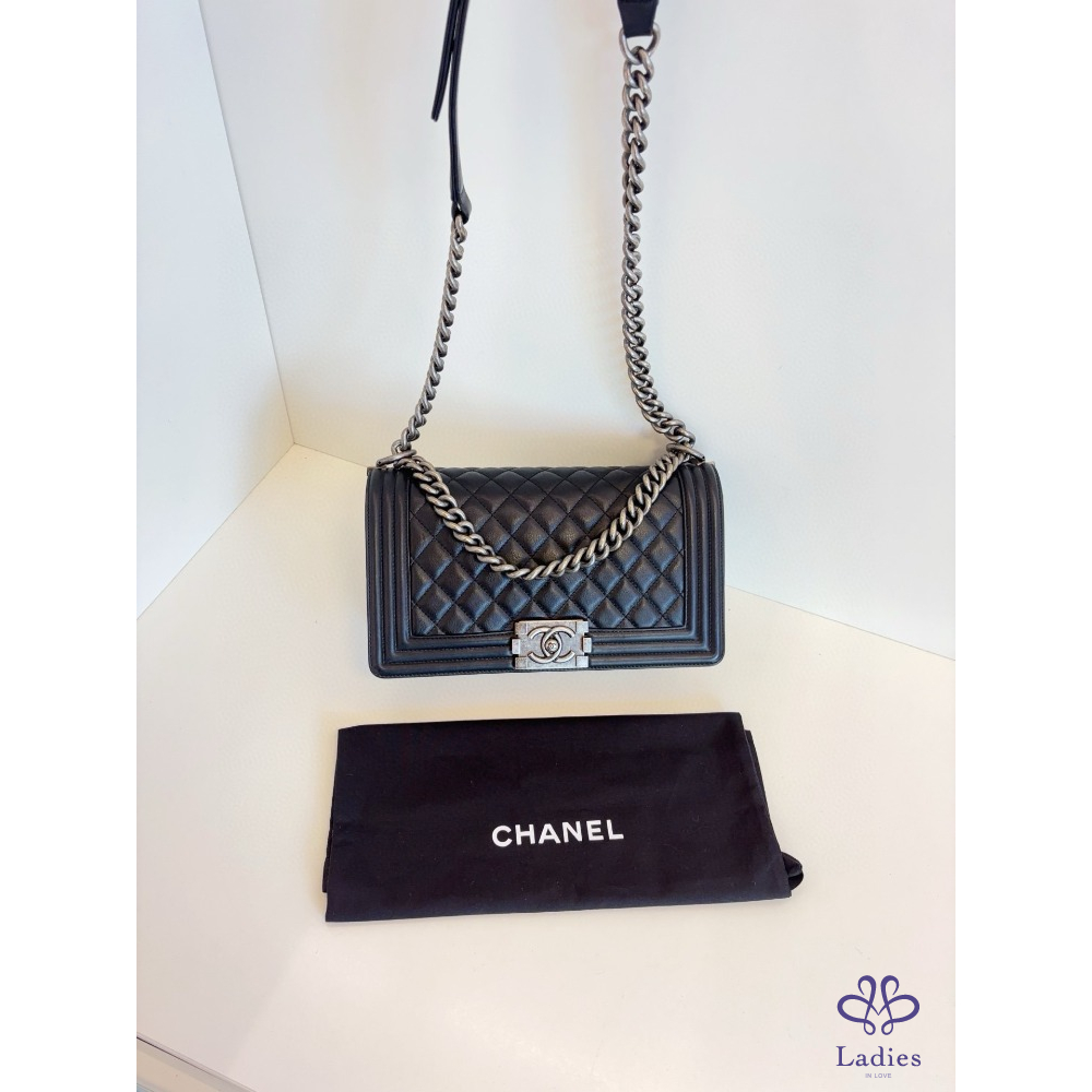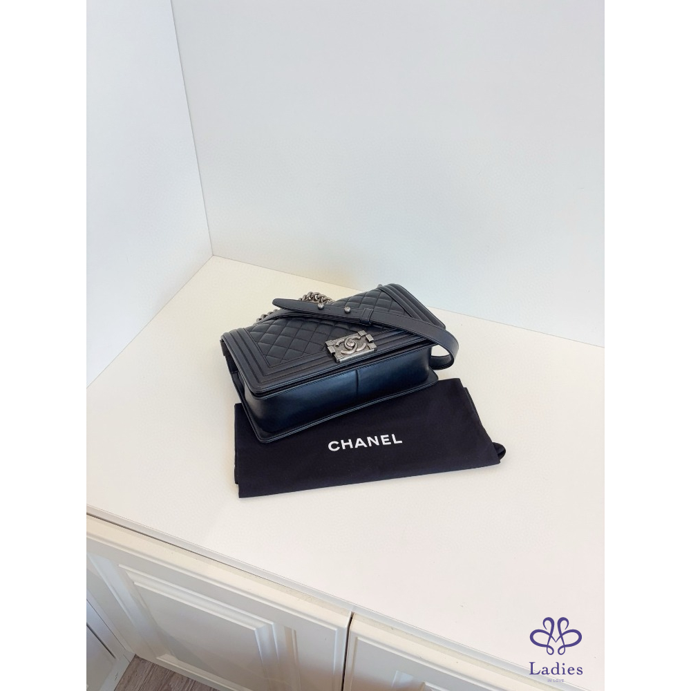 CHANEL 香奈兒 黑銀牛皮 Leboy 中款 25 開